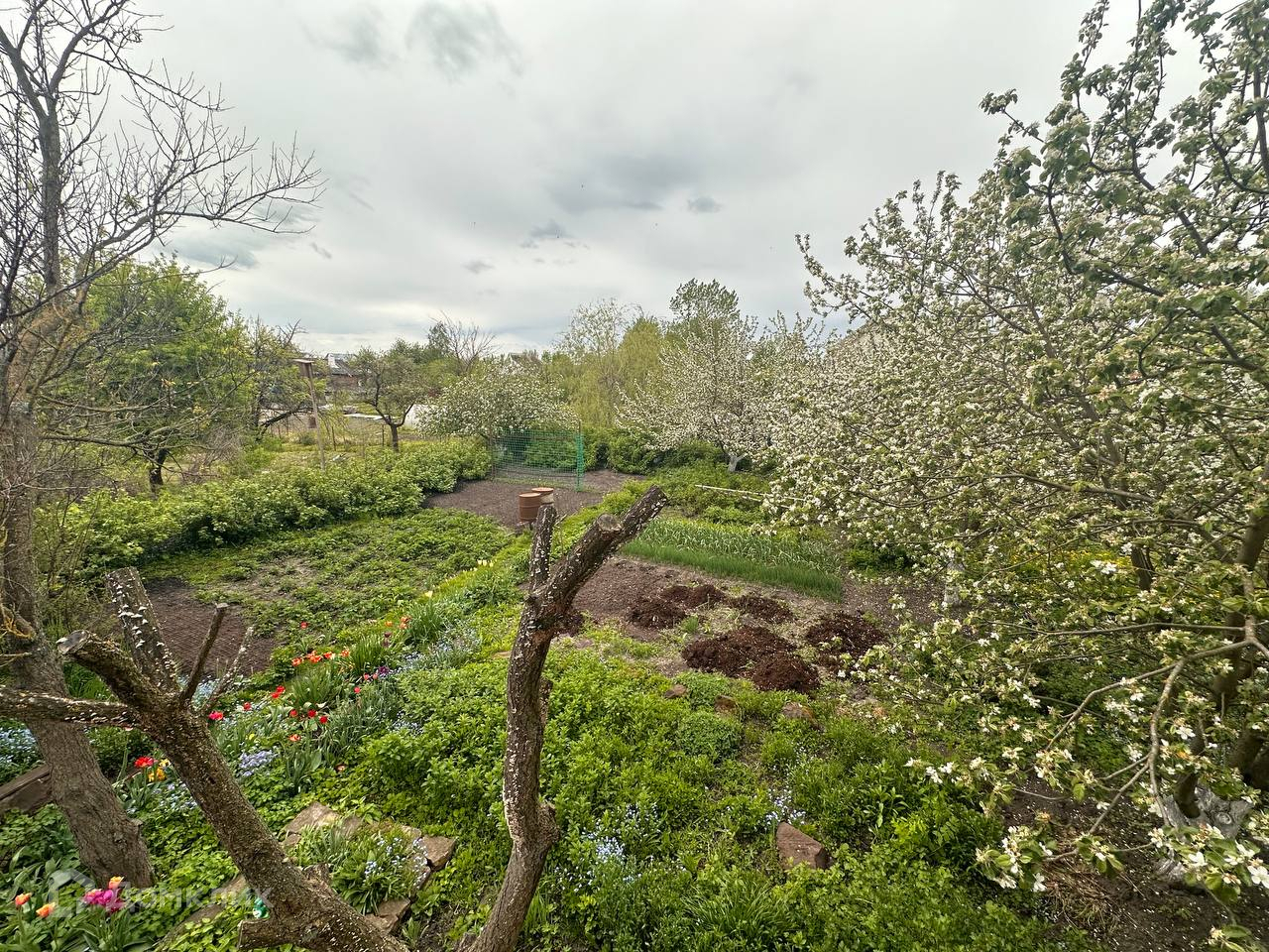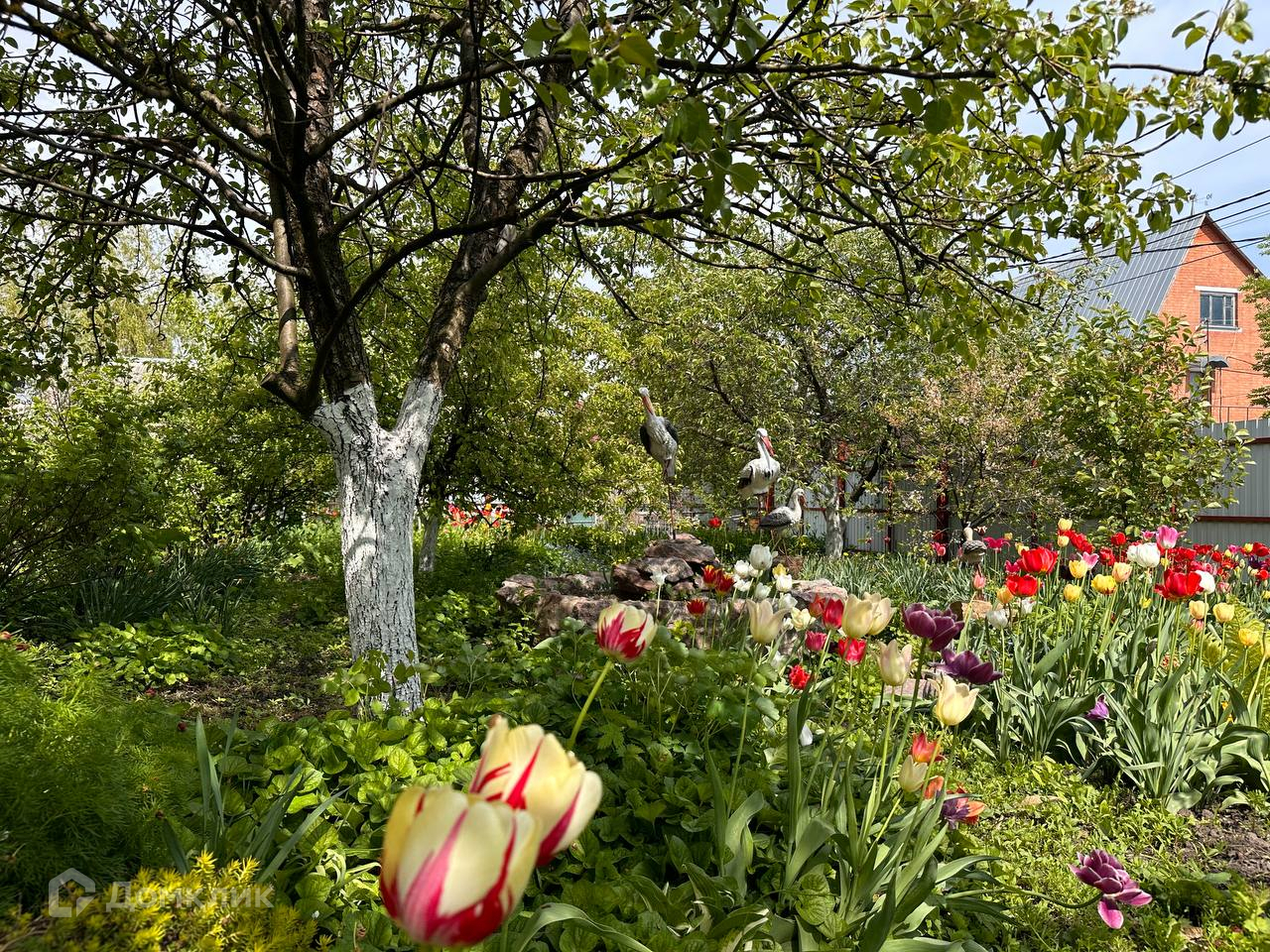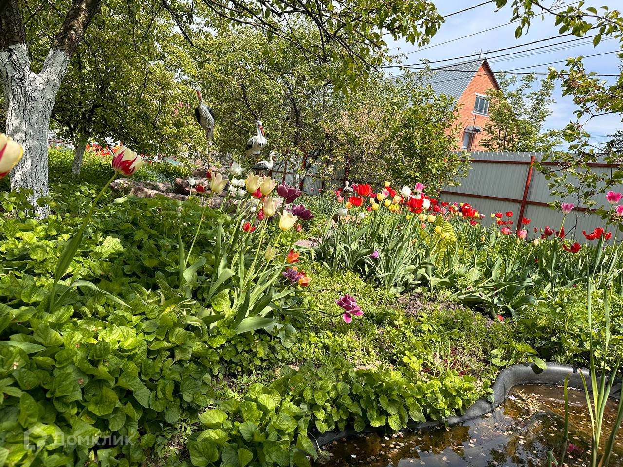 Также есть голубятня, шикарный сад, утопающий в цветах и во множестве плодовых деревьев и декоративных кустарников и пруд с рыбой.