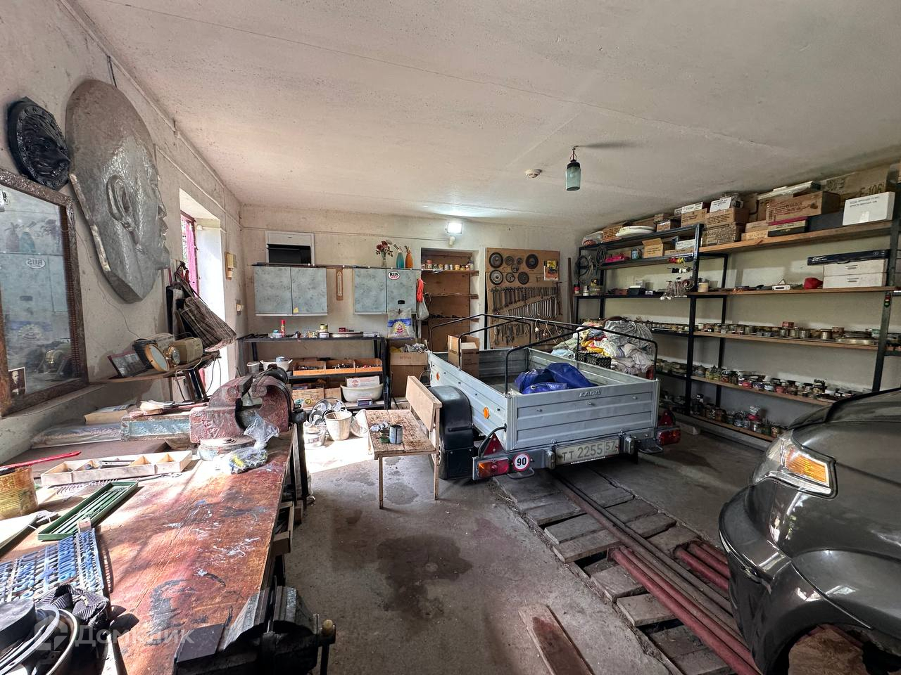 На 19 сотках земли (межевание сделано) возведены кирпичные постройки: сараи, гараж со смотровой ямой, эстакада, летняя кухня с коммуникациями и обустроенным подвалом.