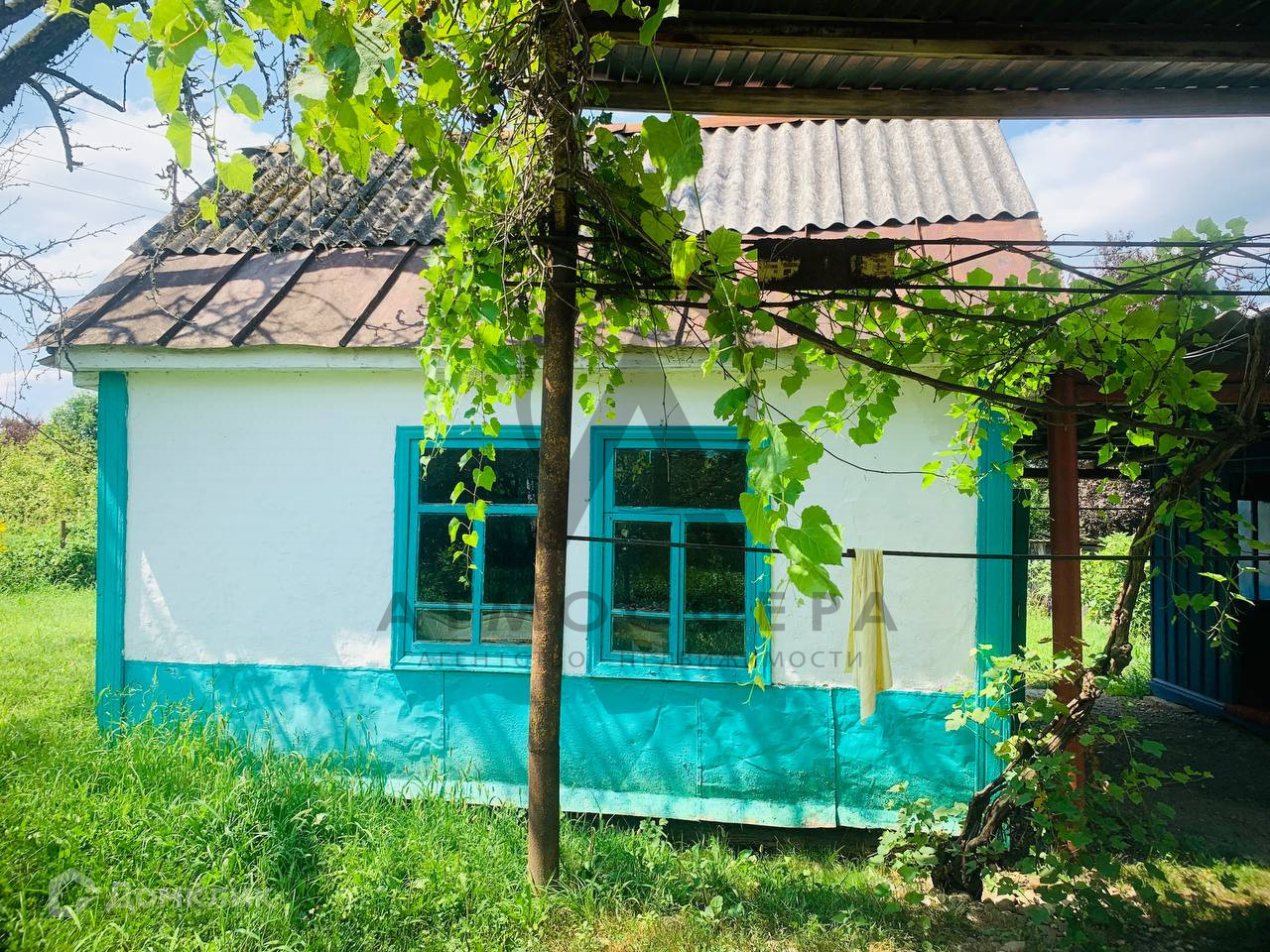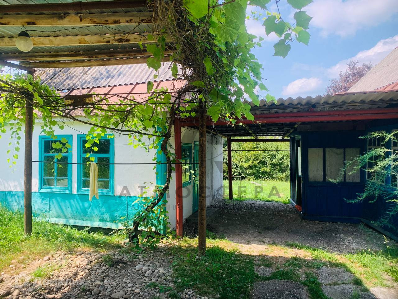 По мимо дома на участке расположен навес и еще один маленький дом, в котором находится летняя кухня и санузел.