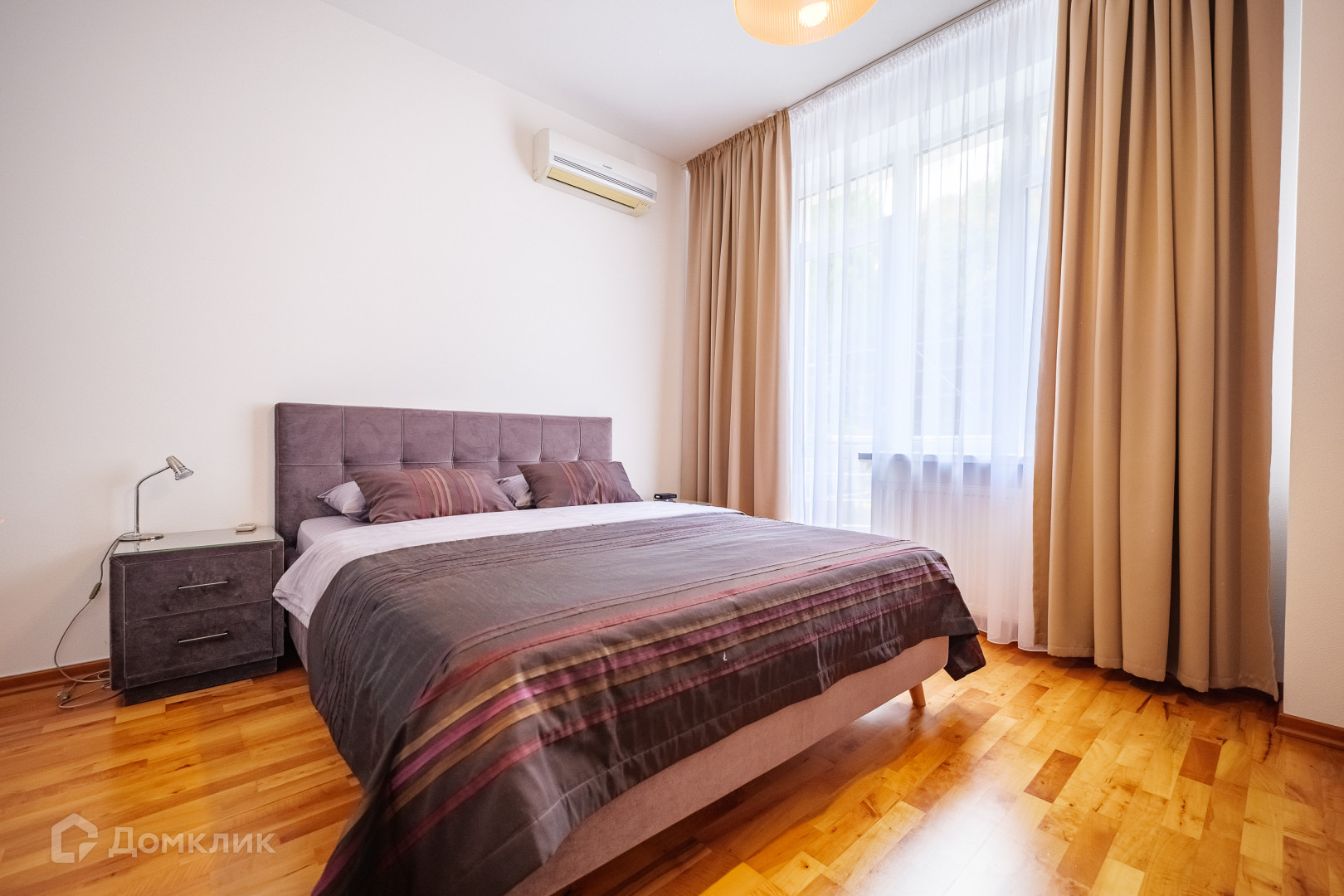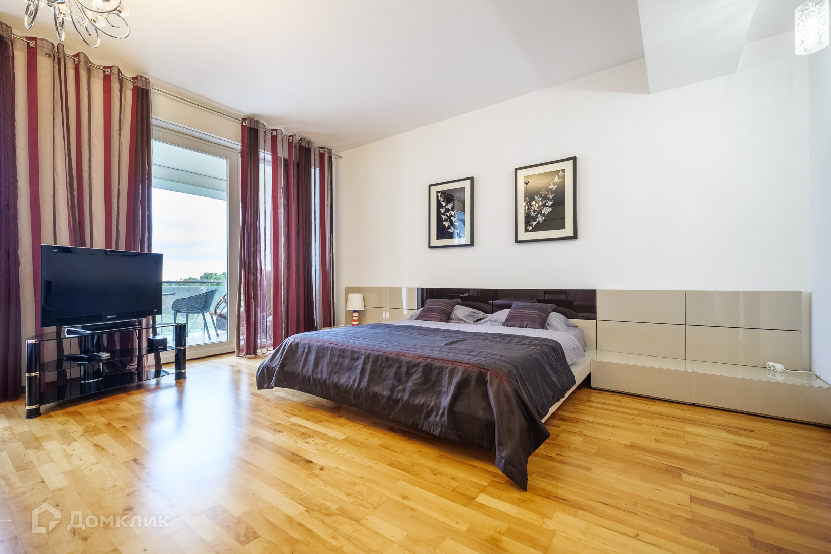 -спальня с кроватью king-size и балконом.
