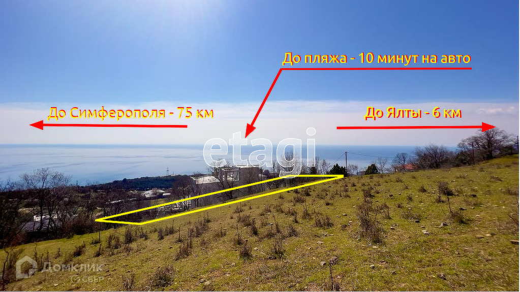 Продается земельный участок общей площадью 7 соток в пгт Никита с уклоном в сторону моря. Вид с участка - море и горы. Массив, где расположен участок активно развивается и строится. Назначение земли: ИЖС. Коммуникации: газ в 50 метрах, столб электричества на границе участка, вода рядом. Участок находится выше трассы, подъездные пути 50% асфальт, 50% грунт. В 5 минутах школа, магазины, аптека и пр. До Ялты 6 км, до Симферополя 75 км. По соседству с участком - дружелюбные соседи, экологическая зона и заповедник, невероятной красоты морская гладь и горные хребты. Звоните!