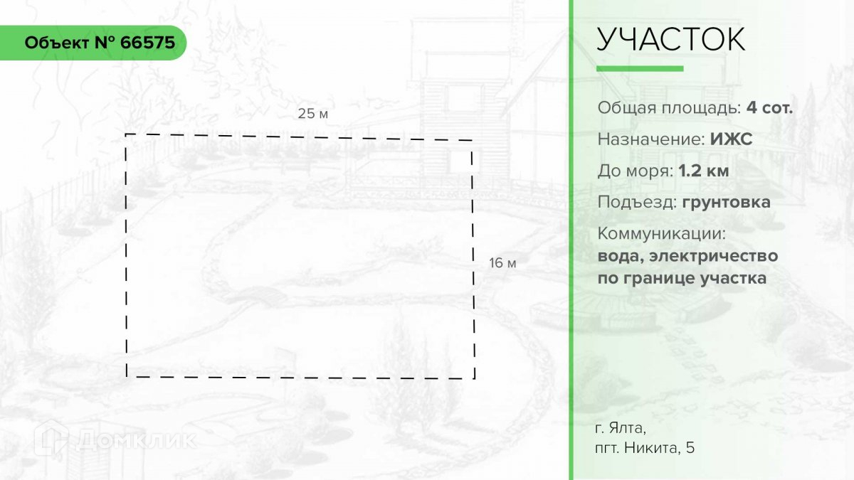 Продается земельный участок пгт Никита (Ялта). Общая площадь участка 4 сотки.  Назначение земельного участка: индивидуальное жилищное строительство (ИЖС).