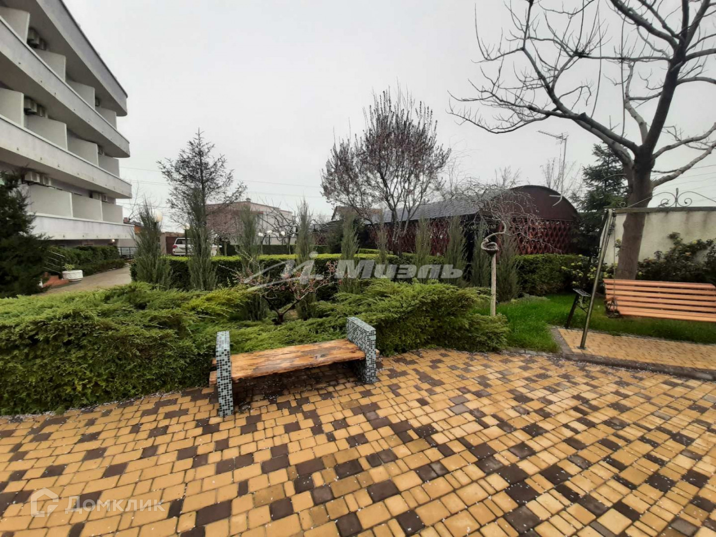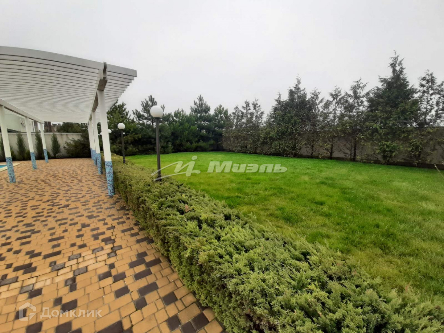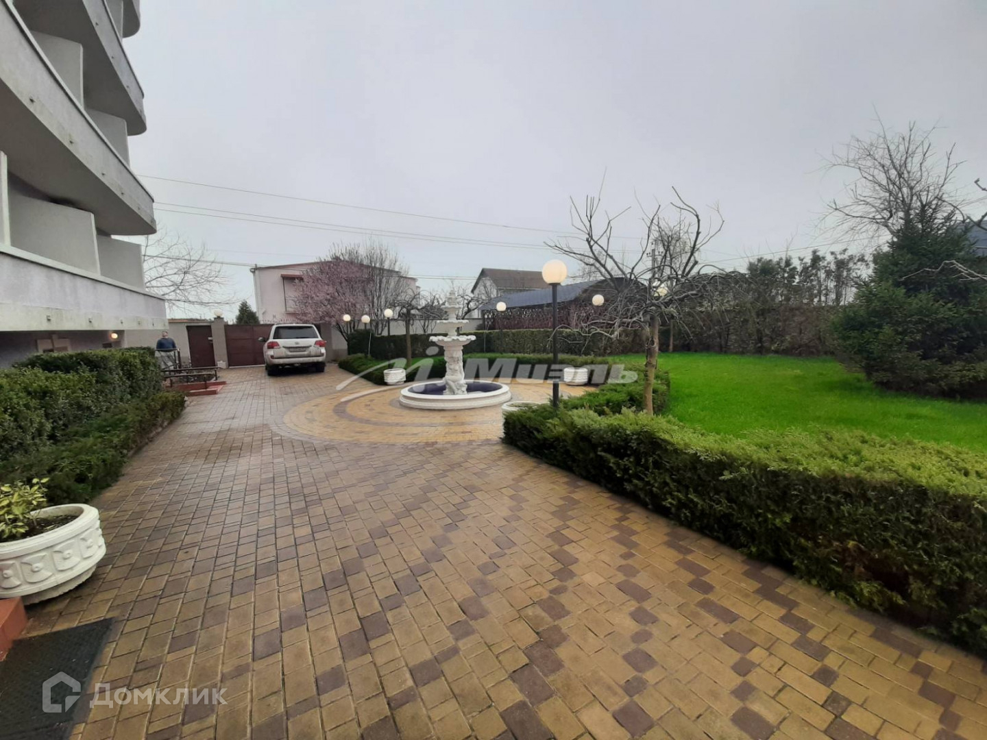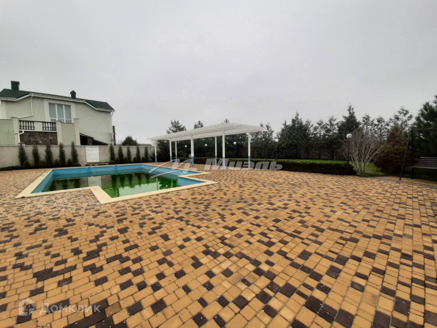 На территории две большие беседки, большой бассейн, огромная зона отдыха, двор выложен брусчаткой, так же есть фонтан.