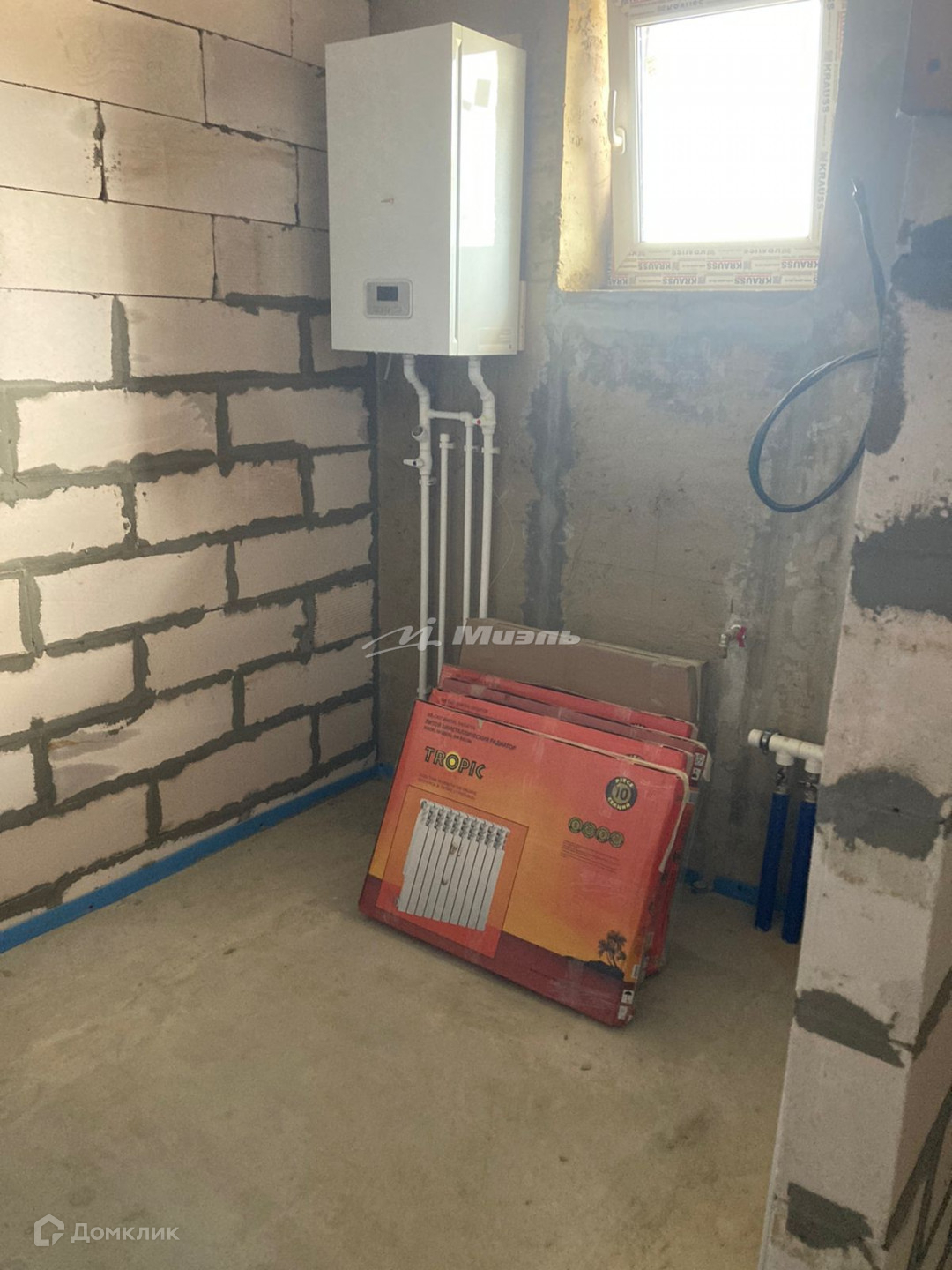Полы, кроме трех спален - теплые водяные, отопление разведено, котел уже установлен, радиаторы есть.