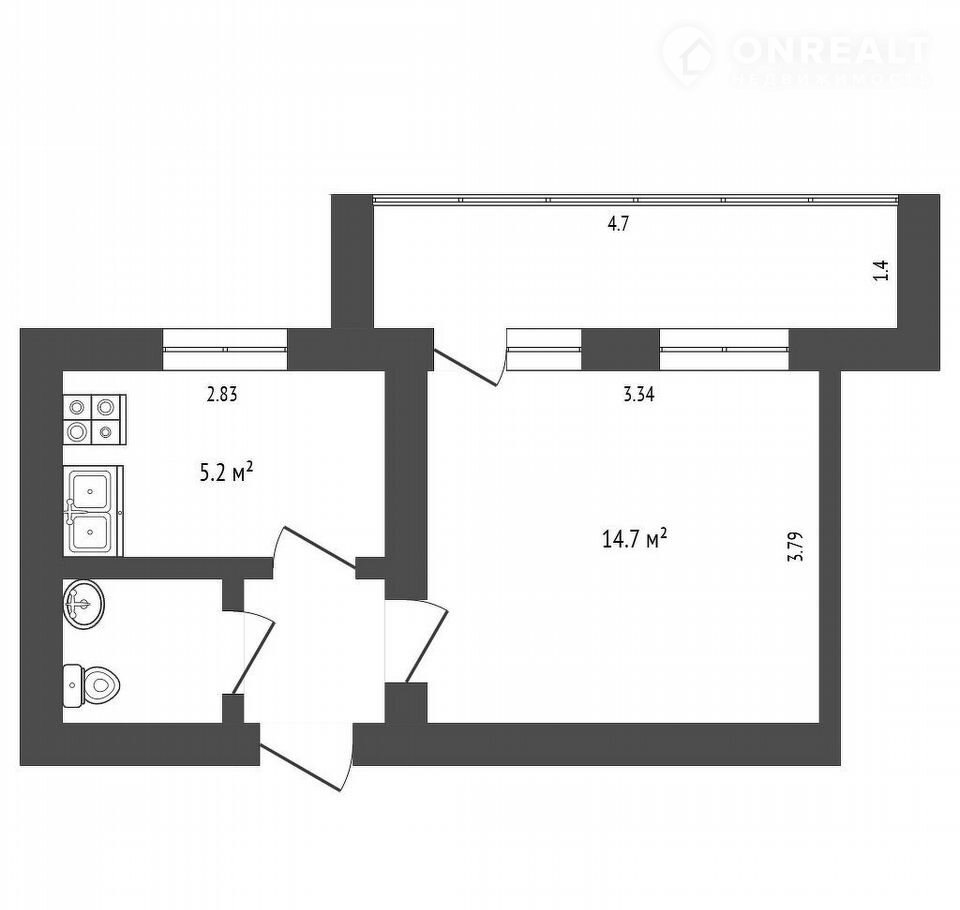 Балкон, лоджия 1 балкон
