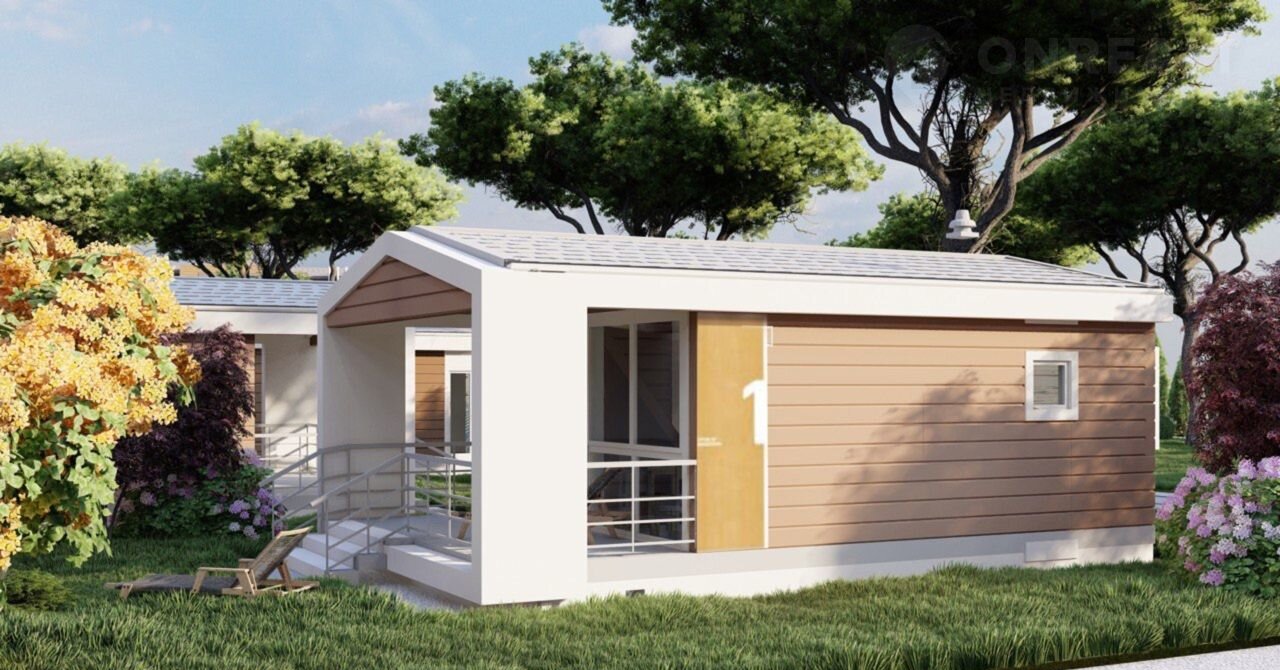 Гостевых домов (коттеджи) - 21 модульного типа – 840 м2, общая площадь – 40 м2, состоящие: комната – студия – 12.60 м2, спальня – 9.20 м2, санузел – 8.10 м2, терраса – 11 м2 + 9 фундаментов. Получение право собственности, регистрация РФ в процессе.