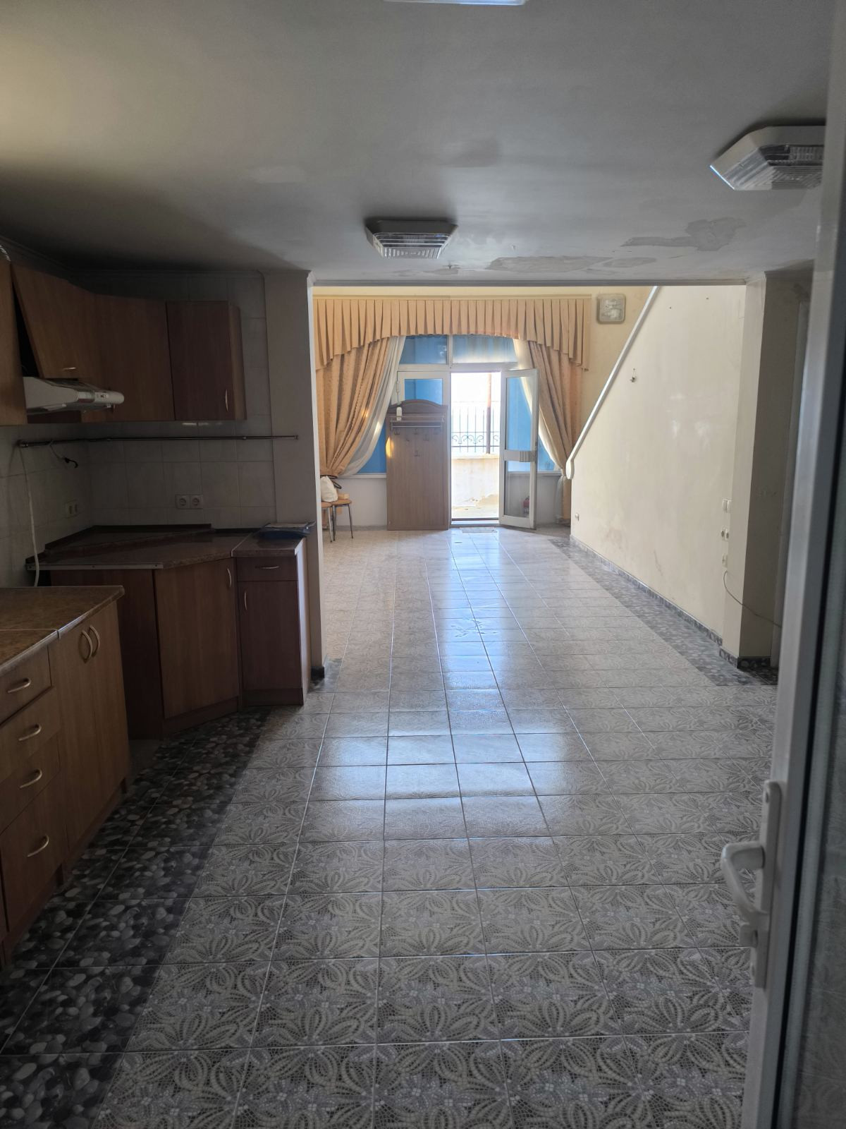 На данный момент состояние требует небольшого ремонта( покраска стен+натяжной потолок и бетонирование площадки перед входной группой).