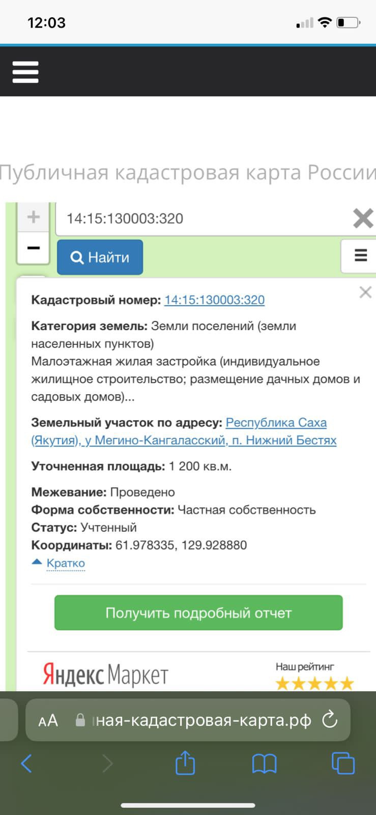 ✅кад.номер 14:15:130003:320