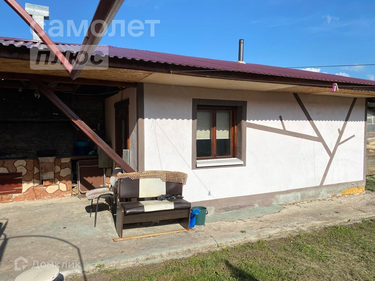 Добротный коттедж с земельным участком, на котором расположен навес для двух автомобилей, баня и теплица