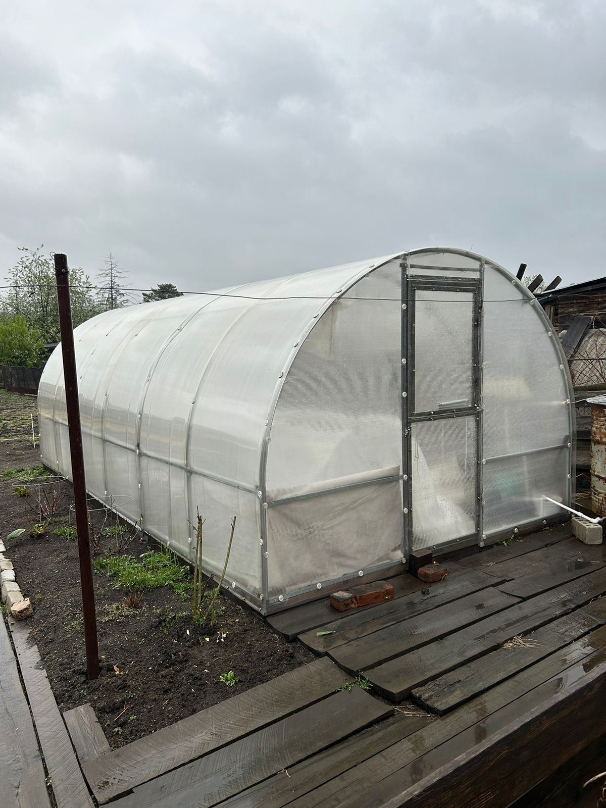 Имеется теплица, оборудованна автопроветривателями, установлена система капельного полива.