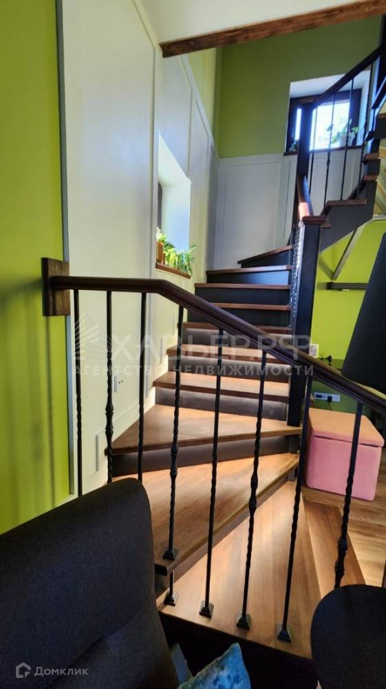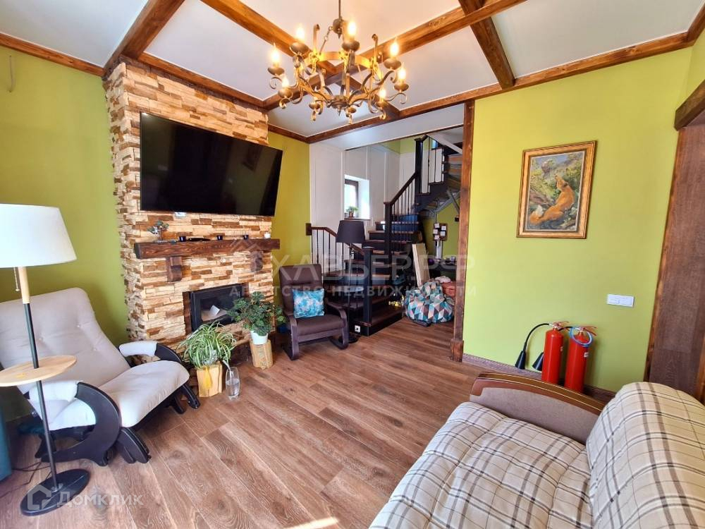 На первом этаже совмещенный с душем санузел, кухня электрическая духовка, газовая плита, фильтр воды, гостиная с камином, рабочей зоной и выходом на террасу. На втором этаже второй совмещенный с ванной санузел, детская и спальная с выходом на балкон. Имеется чердачное помещение со складной лестницей.