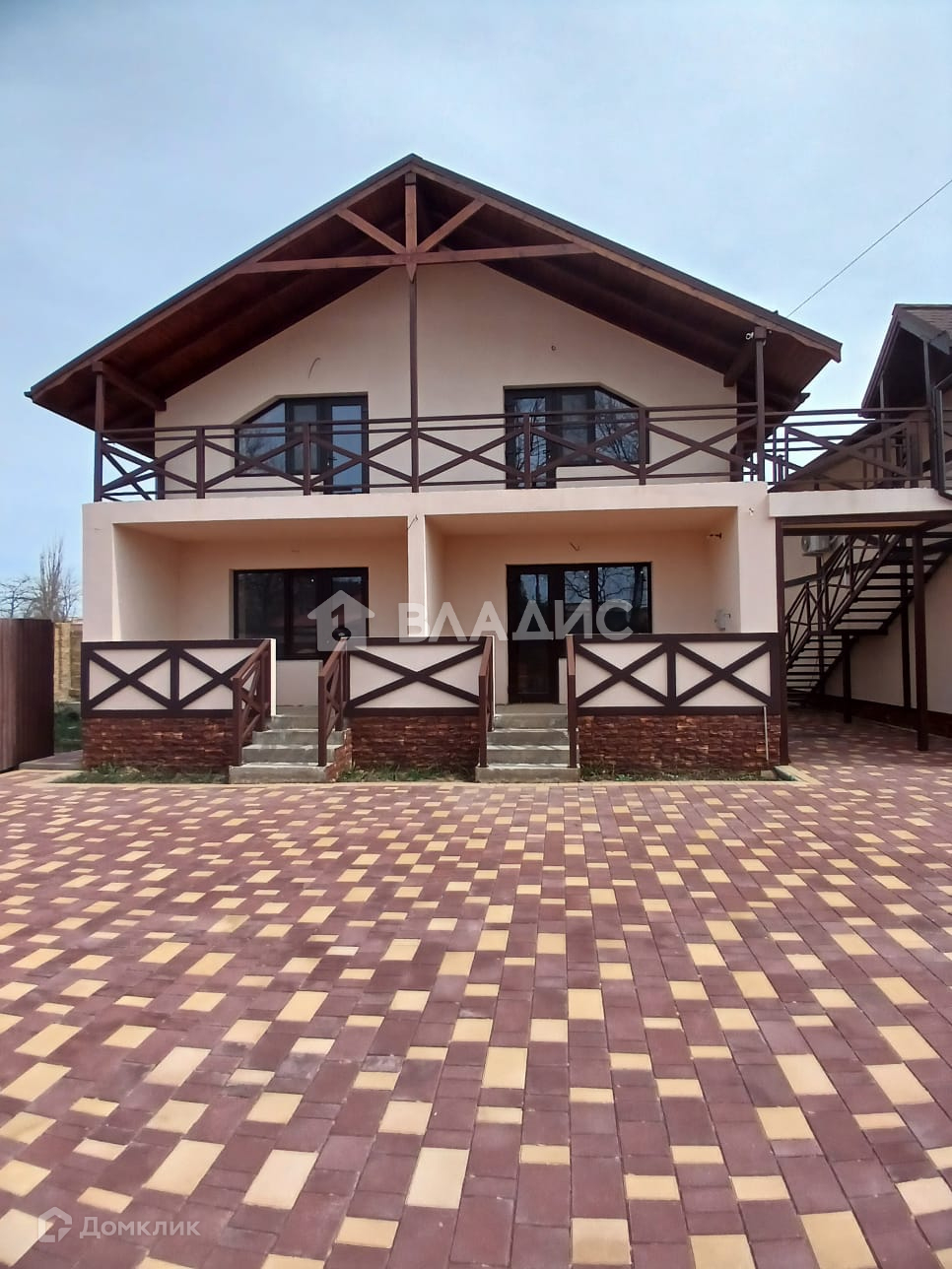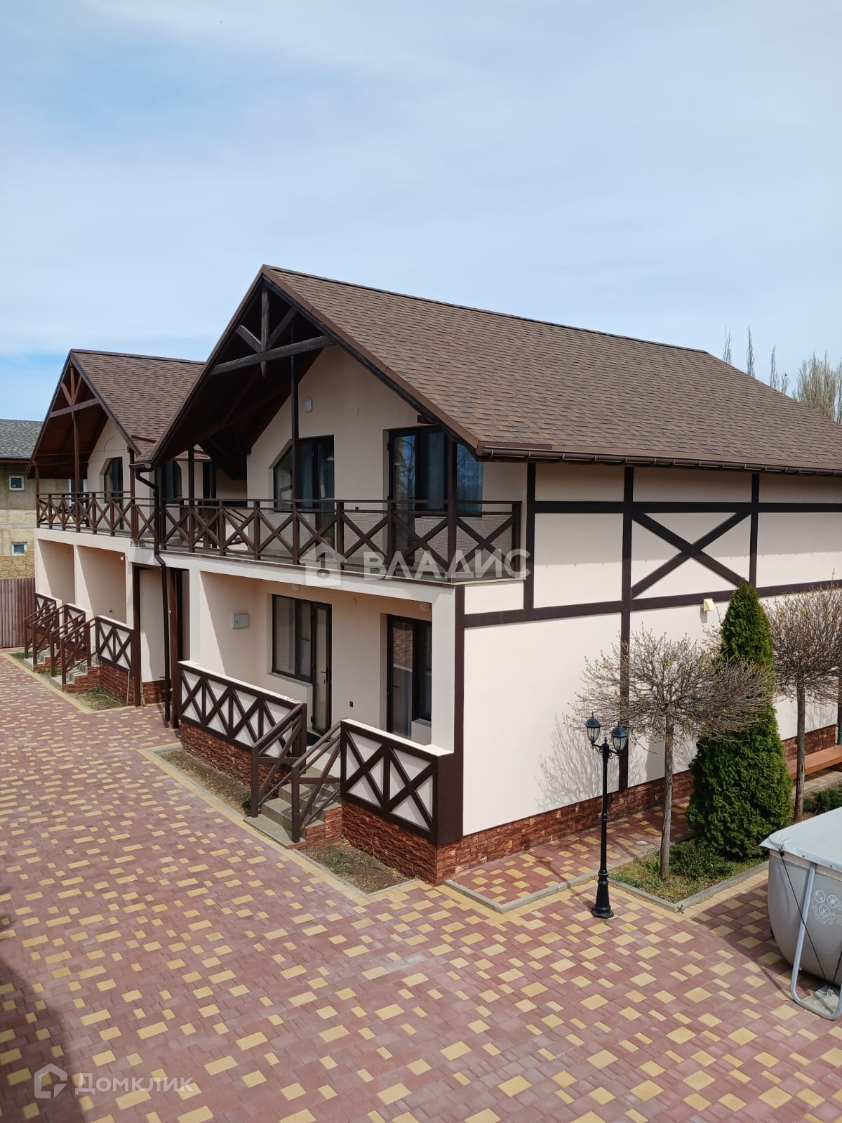 Дом расположен в посёлке Новофёдоровка, всего в 800 метрах от чёрного моря. Дом построен на 10 сотках земельного участка и состоит из 3х двухэтажных домов и один одноэтажный дом.