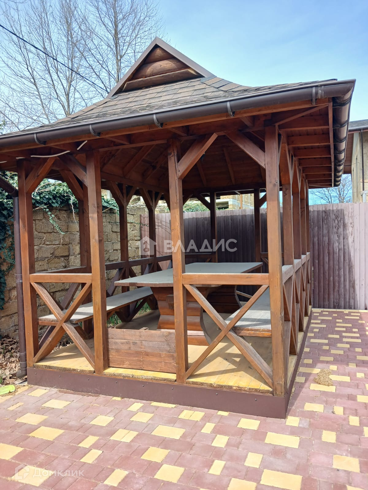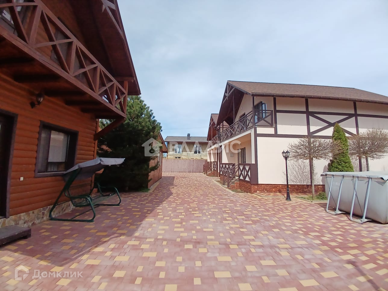 Территория облагорожена: есть красивые зелёные насаждения, беседка, бассейн и кухонная зона со всем необходимым оборудованием.