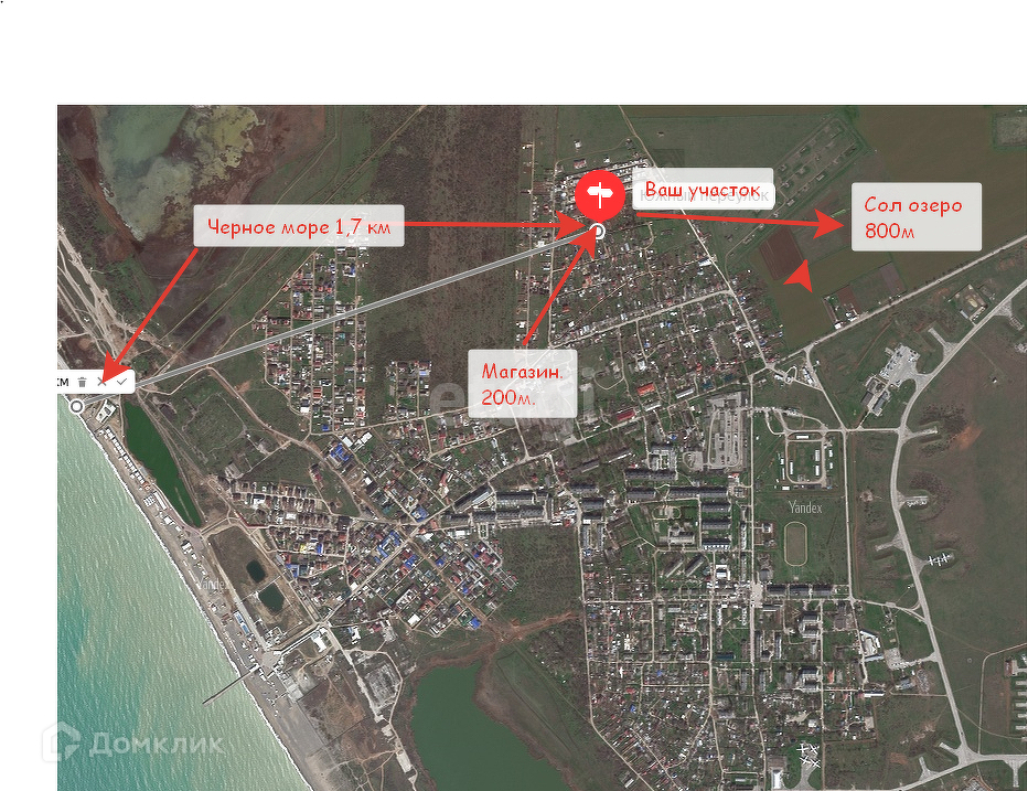 В 800м лечебное соленое озеро.