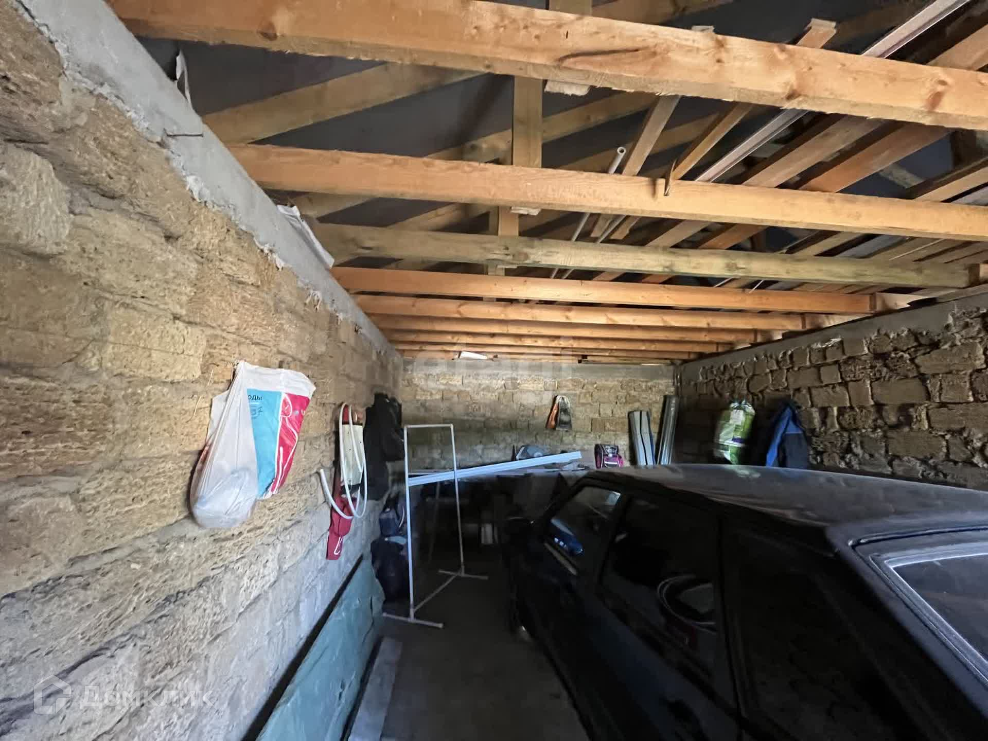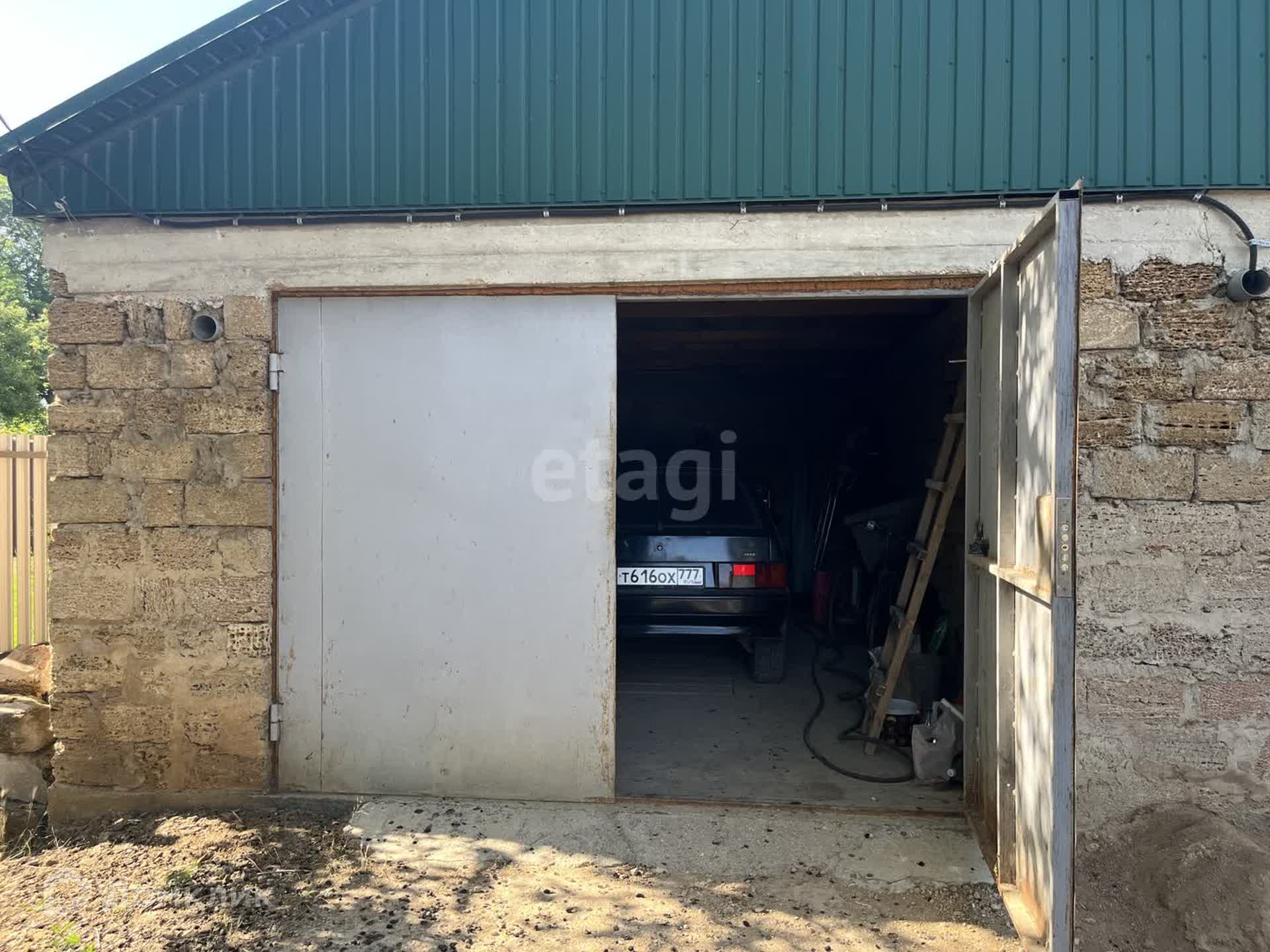 На участке выстроен капитальный гараж площадью 28 кв.м (материал постройки камень-ракушечник)с фундаментом, оштукатурен и перекрыт крышей. В гараж заведён свет, есть возможность подключения центральной канализации, вода в соседнем строении, также имеется смотровая яма. Гараж просторный, есть место для небольшой мастерской и Вашей машины.