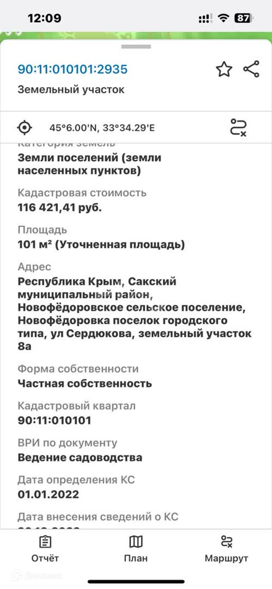 Участок под ИЖС, 1 сот. на продажу в поселке городского типа Новофёдоровка, улица Сердюкова