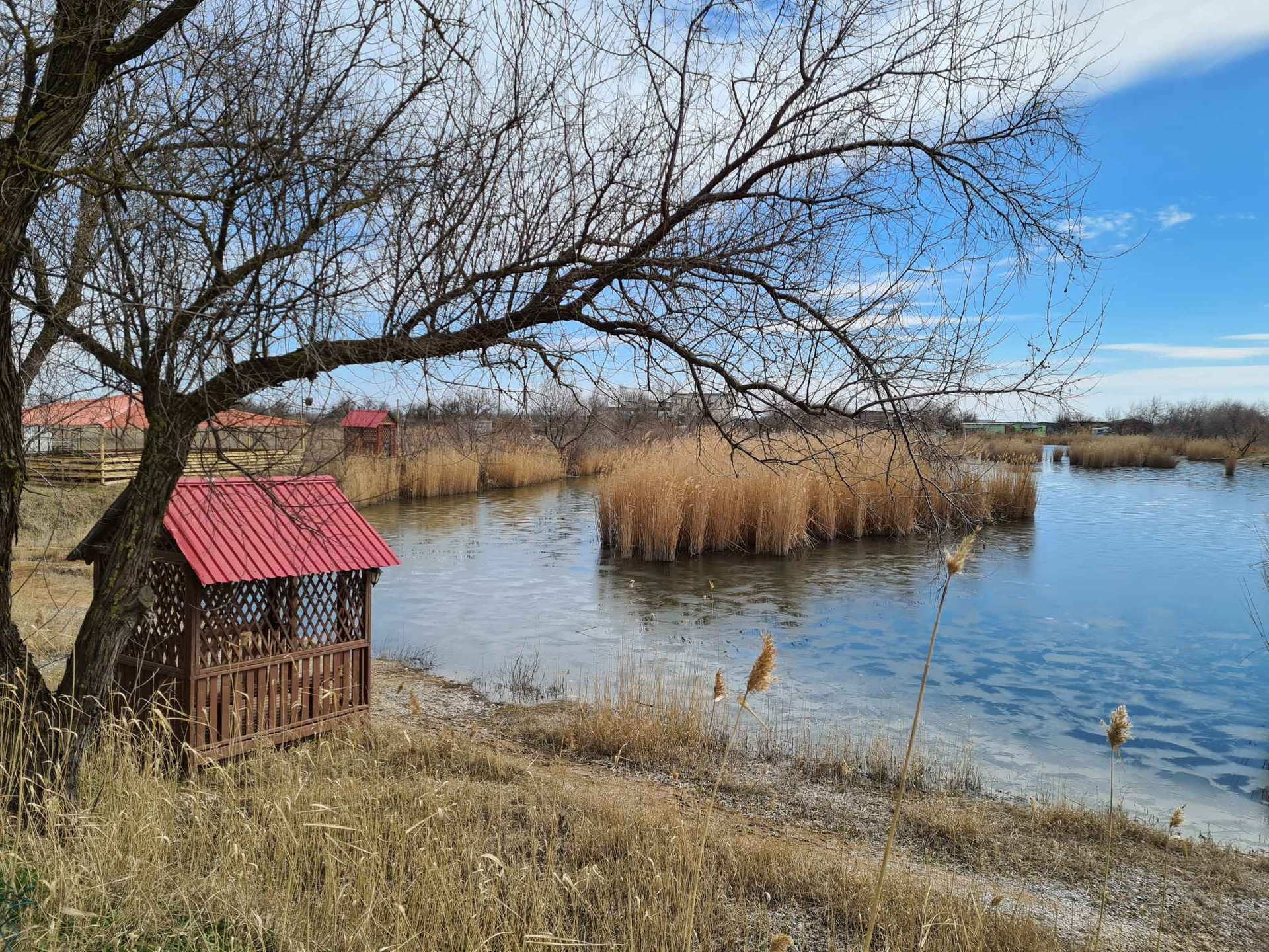 Не далеко от участка находится пляжный пруд, очень живописное место с беседками, где можно отдохнуть и пожарить шашлыки.
