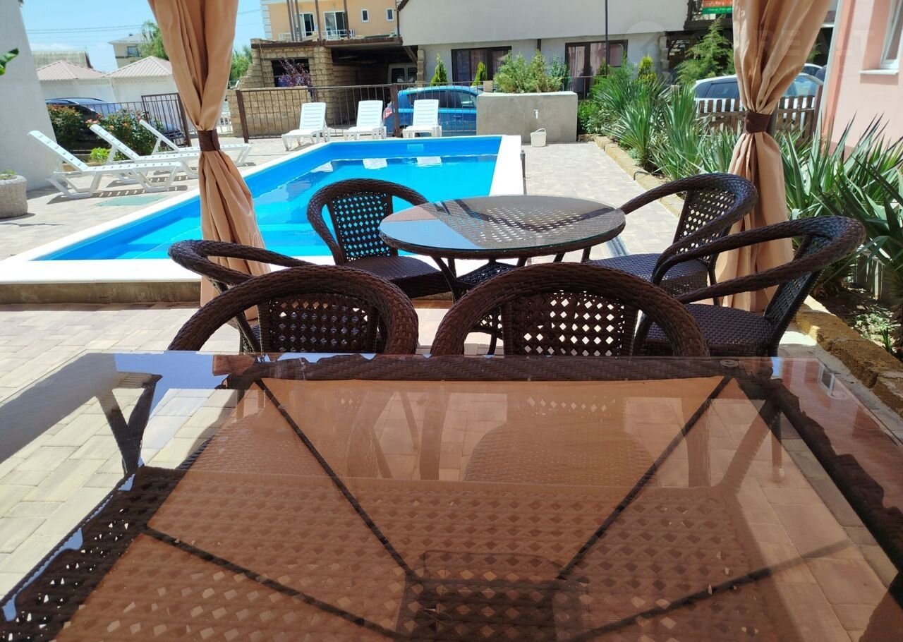 На огороженной територии бассейн, зона мангал барбекю, стоянка для авто.