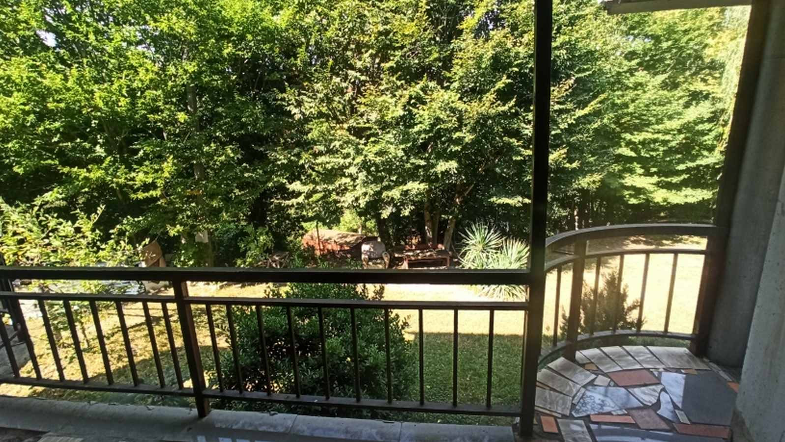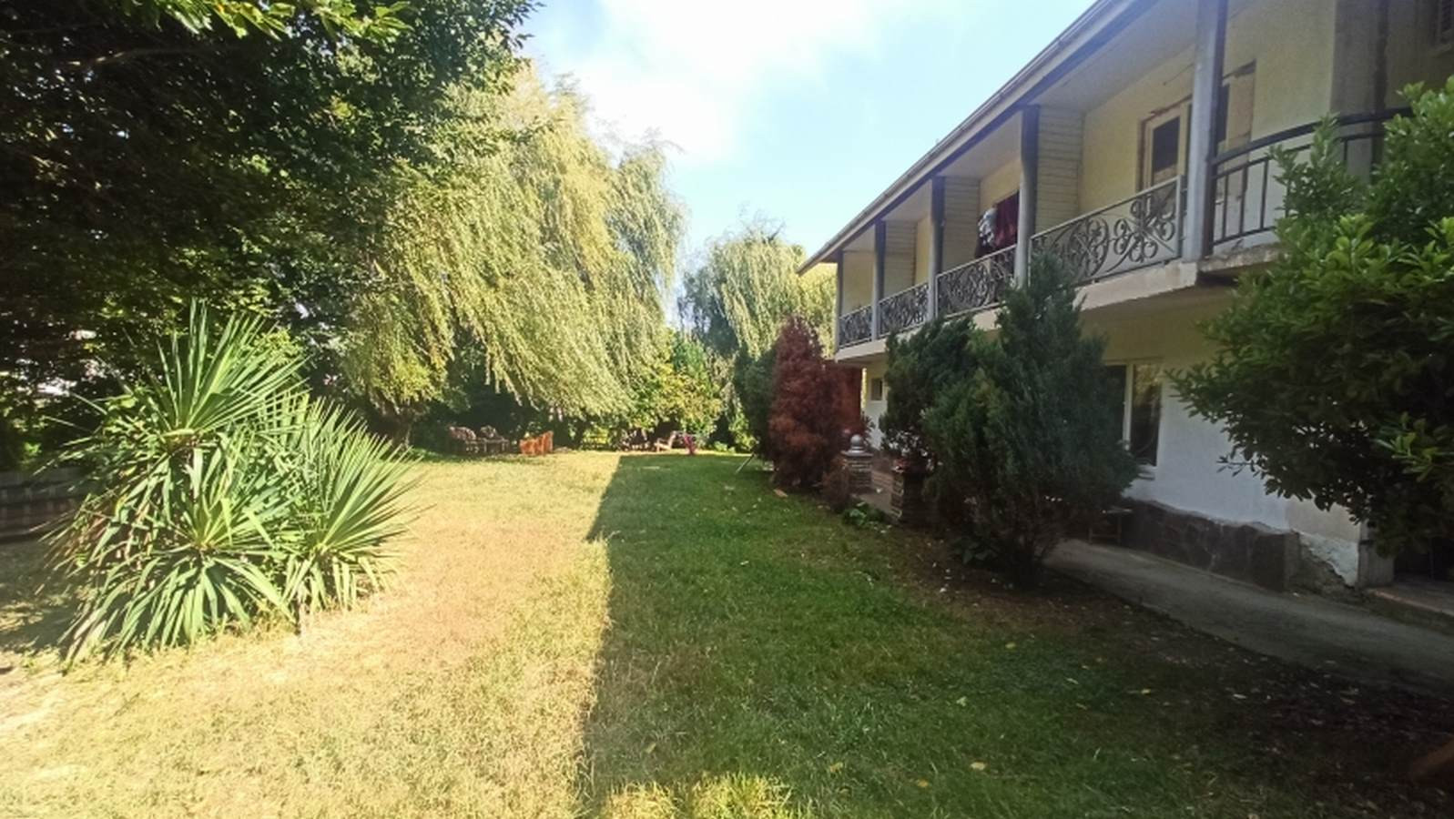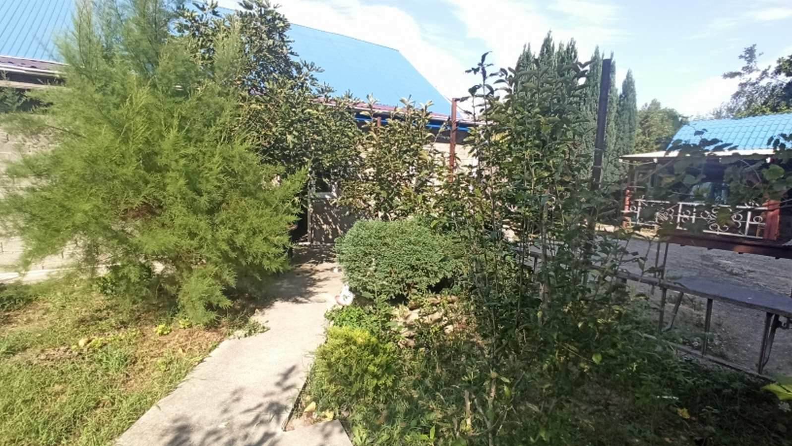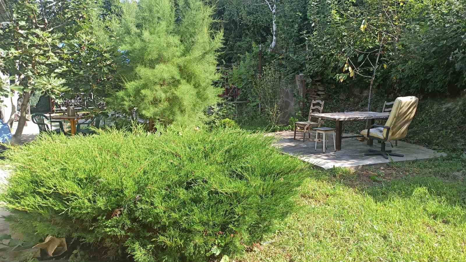 Просторная зона отдыха, можно установить надувной бассейн, теннисный стол и качели.