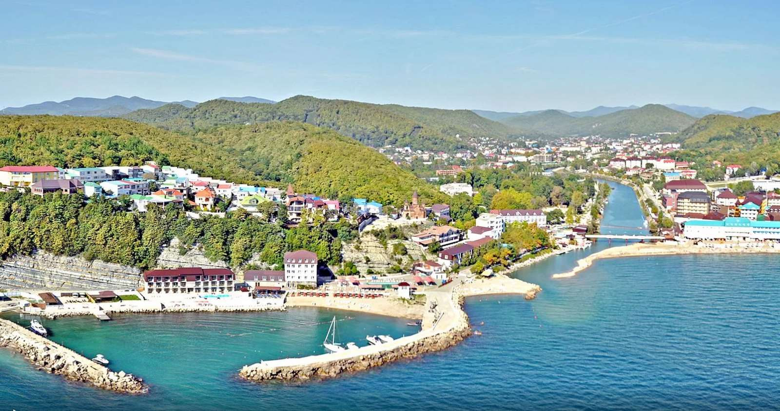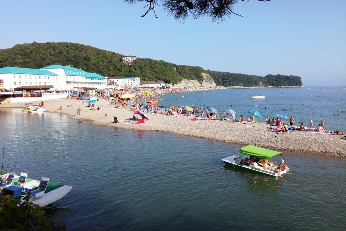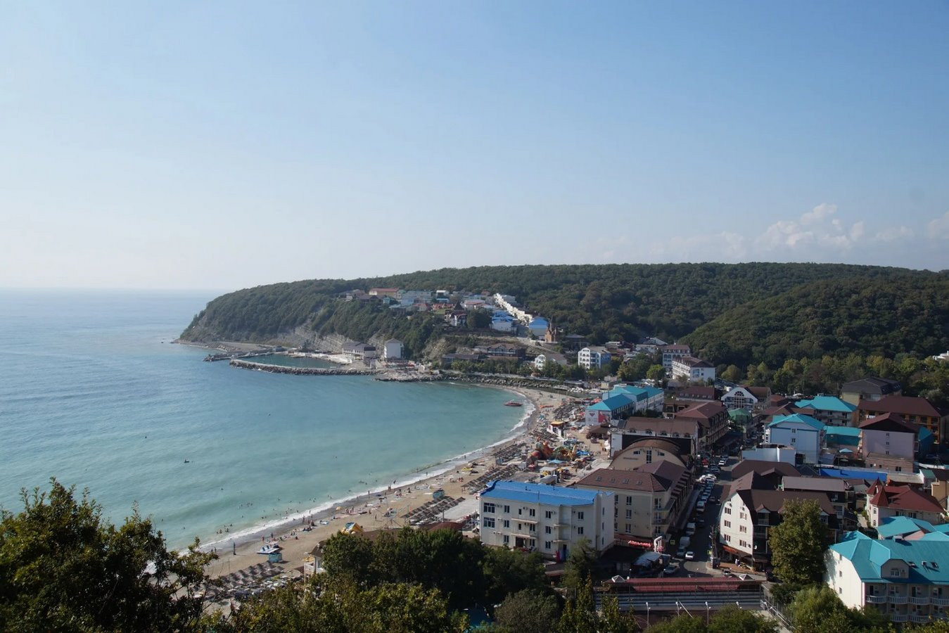 Пляж в посёлке Новомихайловский считается одним из лучших на побережье и расположен в небольшой, экологически чистой Михайловской бухте.