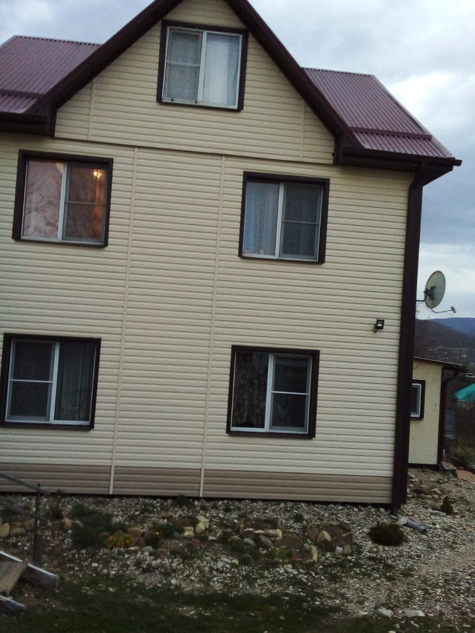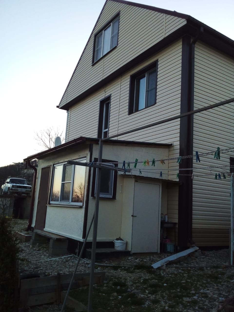 Дом в два полных этажа. Два отдельных входа на этажи внутри дома.Можно использовать на две семьи или под гостиницу. Комнаты отделаны натуральным деревом - вагонкой. С/у на каждом этаже. Подворье расположено в живописном месте поселка! Поселок в курортной зоне!