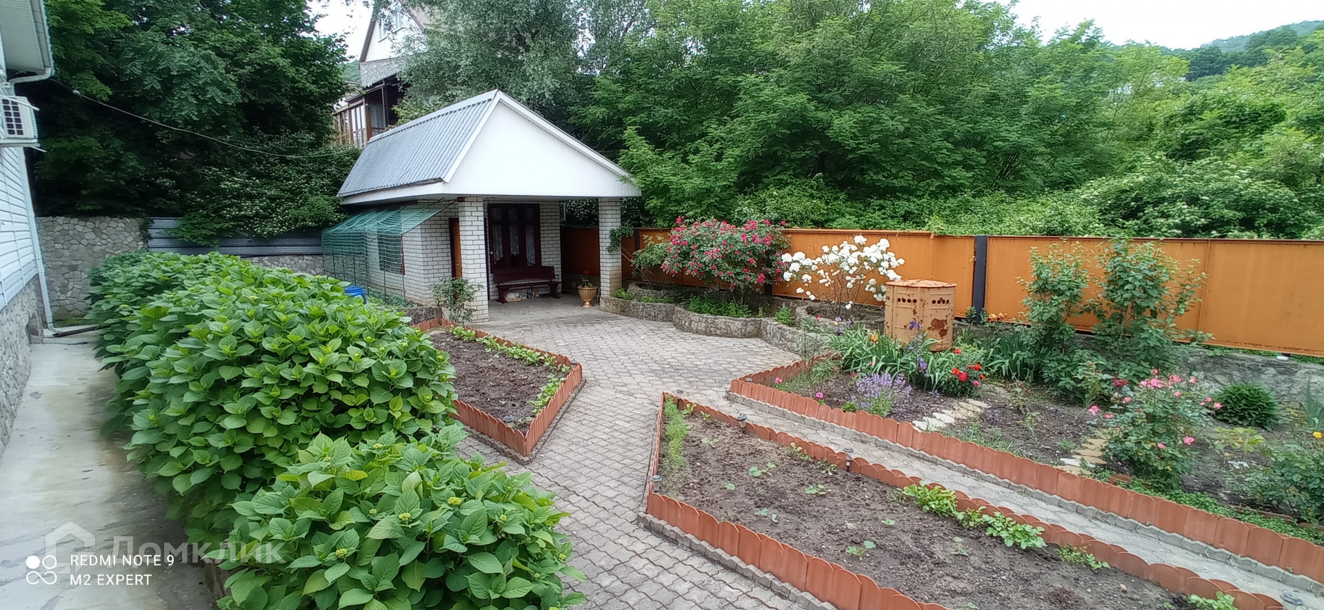 Территория двора ухожена. Высажены плодовые деревья и декоративные насаждения. Много цветов, три вида винограда. С террасы на уровне второго этажа открывается шикарный вид на горы. Из всех окон третьего этажа ,,космическая,, панорама на природу Краснодарского края.