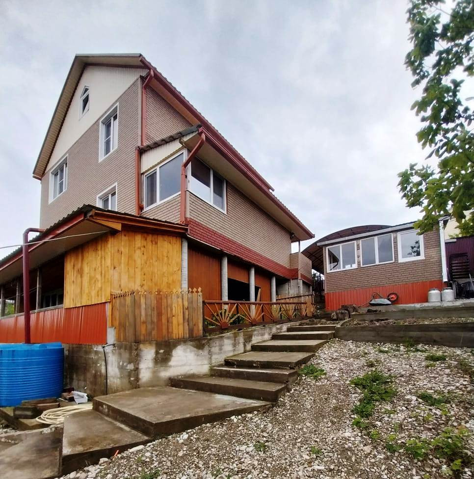 Ваша мечта приобрести уютный дом на море может быть реальностью. Продаётся отличный трехэтажный дом для спокойной комфортной жизни  в одном из самых привлекательных мест Черноморского побережья пгт. Новомихайловский Туапсинского района. Дом 2018 года постройки, материал постройки – блок, строился своими руками качественно для себя. Общая площадь дома 230.1 кв.м. На первом этаже: хол с камином и кухней- столовой с видом из окна на горы и поселок сверху, сан.узел (туалет и душевая). Лестница на второй этаж. На втором этаже: три светлые комнаты (спальня с гардеробной и две гостевые комнаты), санузел ( туалет и ванна). Так же в доме два полноценных номера для сдачи летом отдыхающим (есть постоянные клиенты), вход отдельный со своей кухней и санузлами, и парковкой для гостей. В доме электричество, городская централизованная вода, свой септик (полная многоступенчатая система очистки воды). Отопление печное, прекрасная печь отлично справляется со своей задачей, так же есть теплые электрические полы, сплит системы Газопровод в 1 м. от забора. В доме остается вся мебель. Земельный участок общей площадью 832 кв.м. Категория земель: Земли населенных пунктов. Разрешенное использование (ВРИ): Для индивидуальной жилой застройки. На участке растет плодоносящий сад, также на территории есть новая баня на дровах, новая летняя кухня полностью оборудованная. Территория окружена забором. Удобный подъезд и заезд. Здесь очень спокойно, район буквально утопает в зелени. Некая доля изоляции от оживленных автомагистралей и проезжих частей гарантировано сделает Ваш быт и отдых максимально комфортными и благоприятными. Место вдали от реки, до моря минут 15 неспешным шагом.