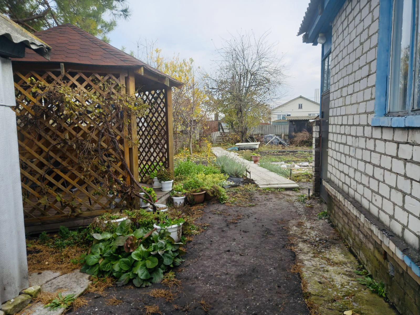 Улица тупиковая - на улице и в доме тихо, никто не мешает. Хорошие соседи. На участке есть огород, сад, имеются хоз постройки и классная беседка для посиделок.