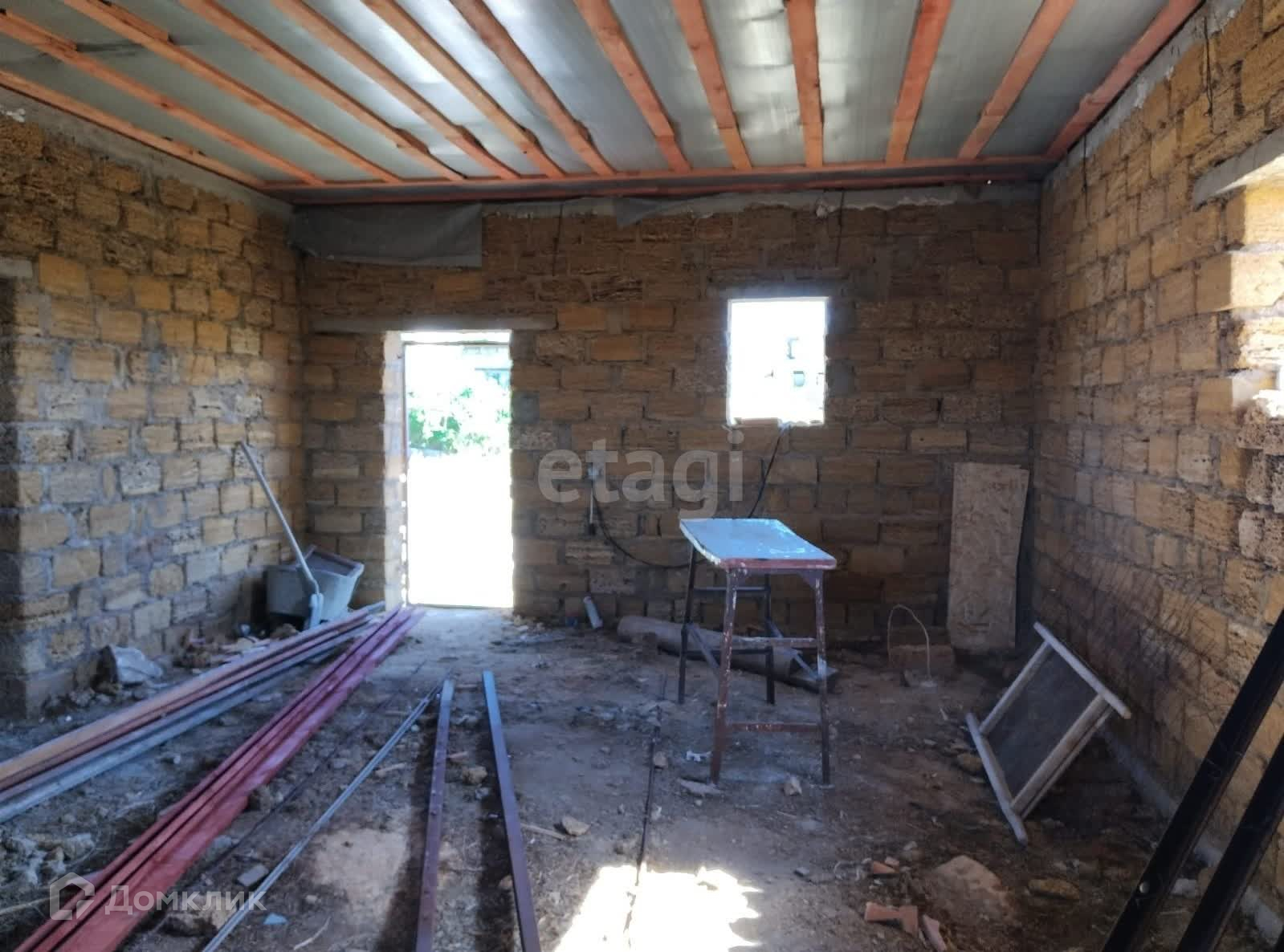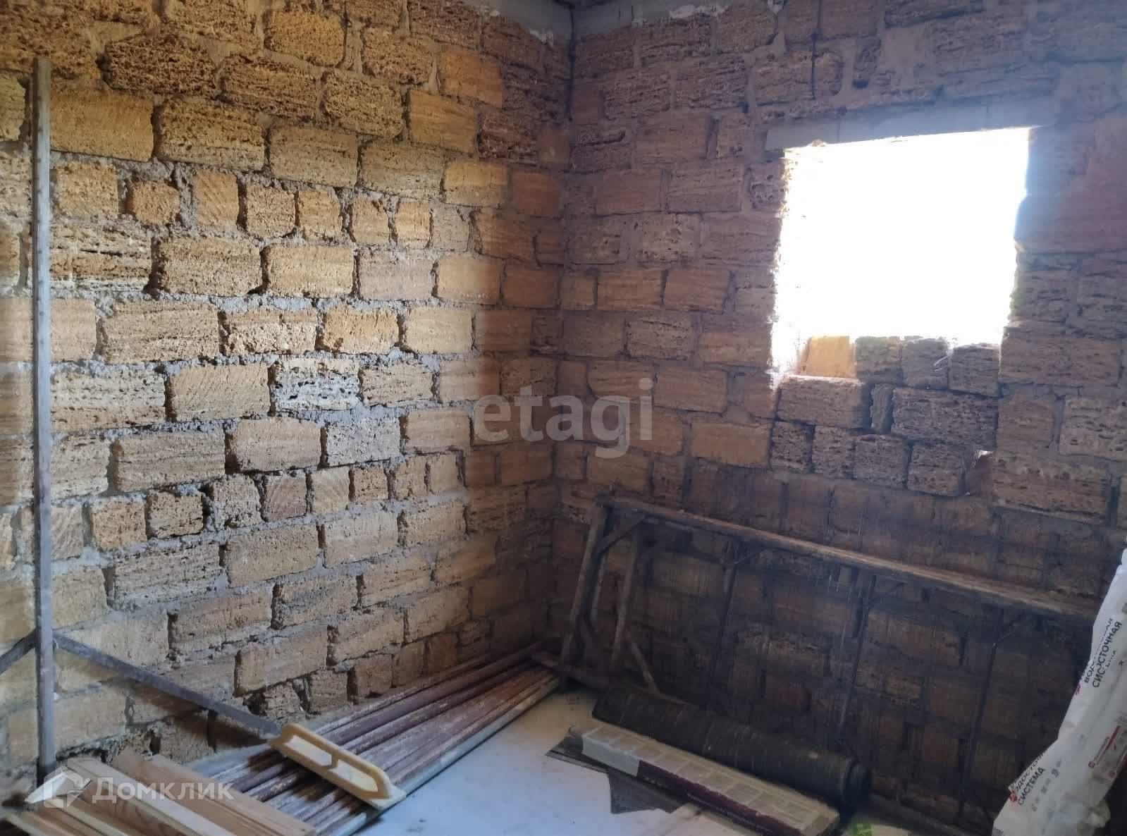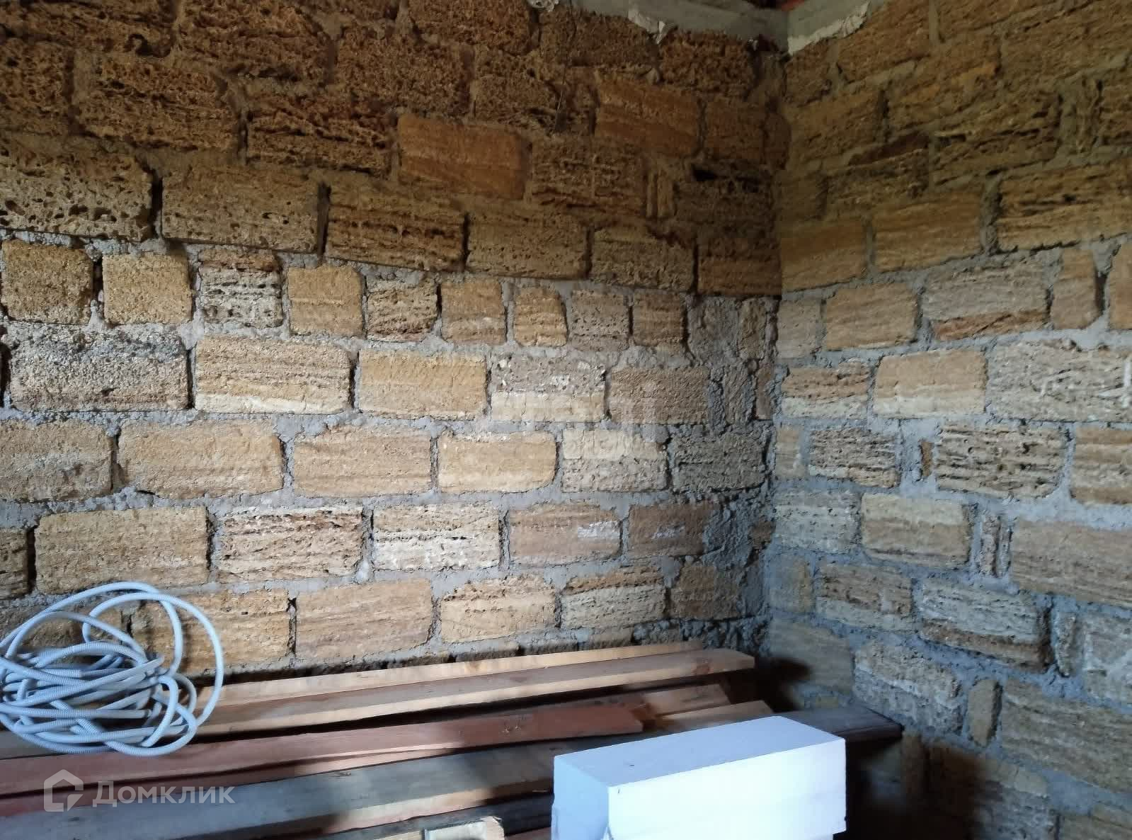 В доме две комнаты, большая кухня. Дом в черновой отделке. Оформлена пока только земля. Есть прописка.