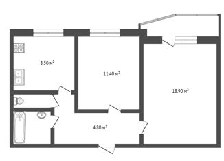 Общая площадь: 57 м2