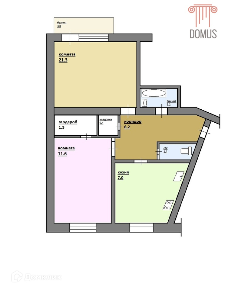 Общая площадь 51.4 м2