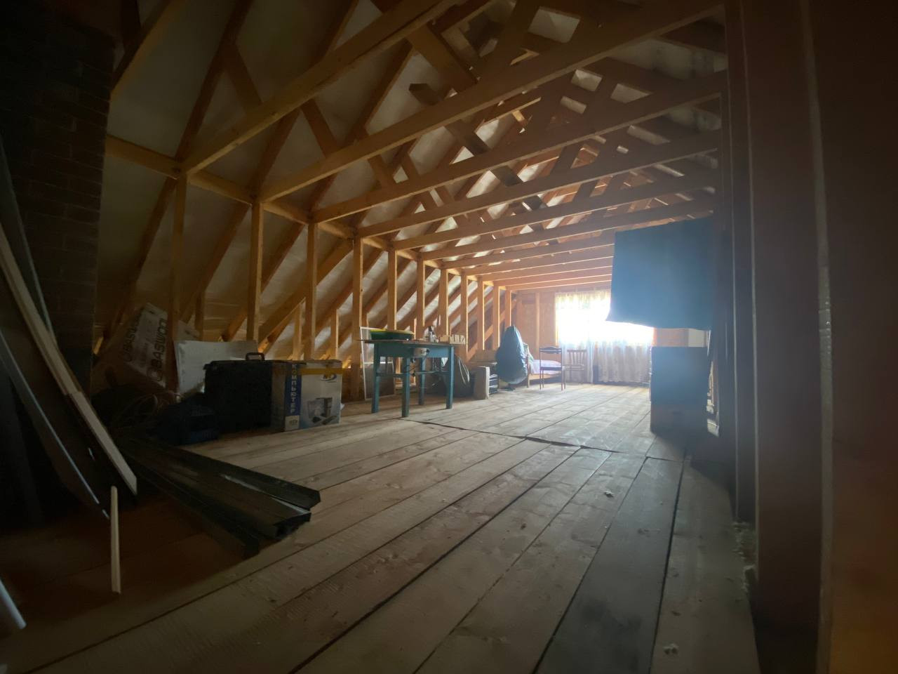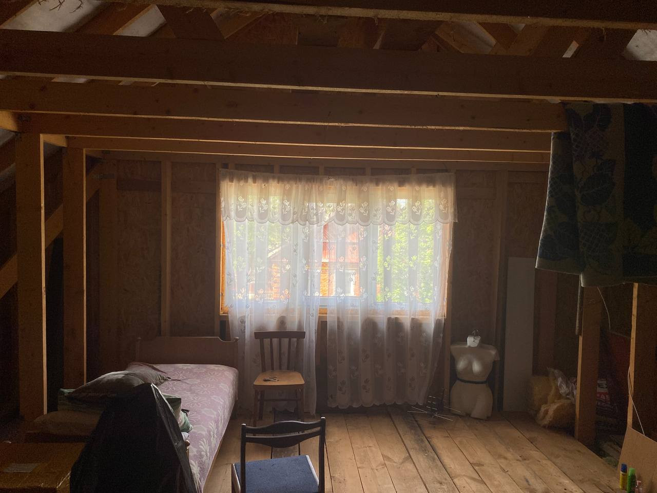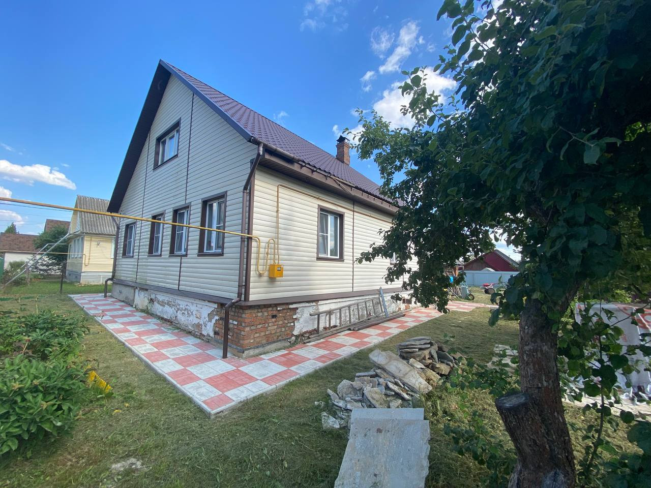 Дом одноэтажный, имеет два входа, по документам 94.3 м.кв., благодаря мансарде фактически 120 м.кв.