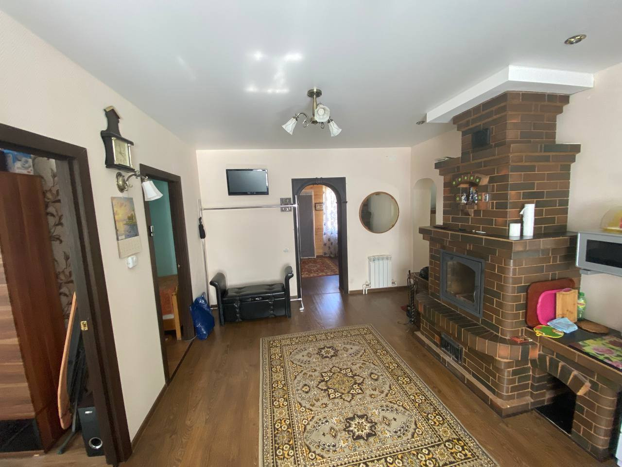 Дом отапливается двухконтурным котлом, в ванной комнате и коридоре установлен «теплый пол», а также в доме установлен замечательный камин.