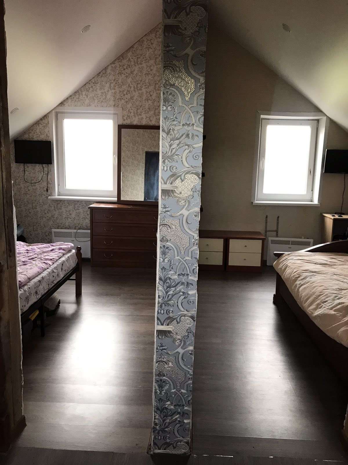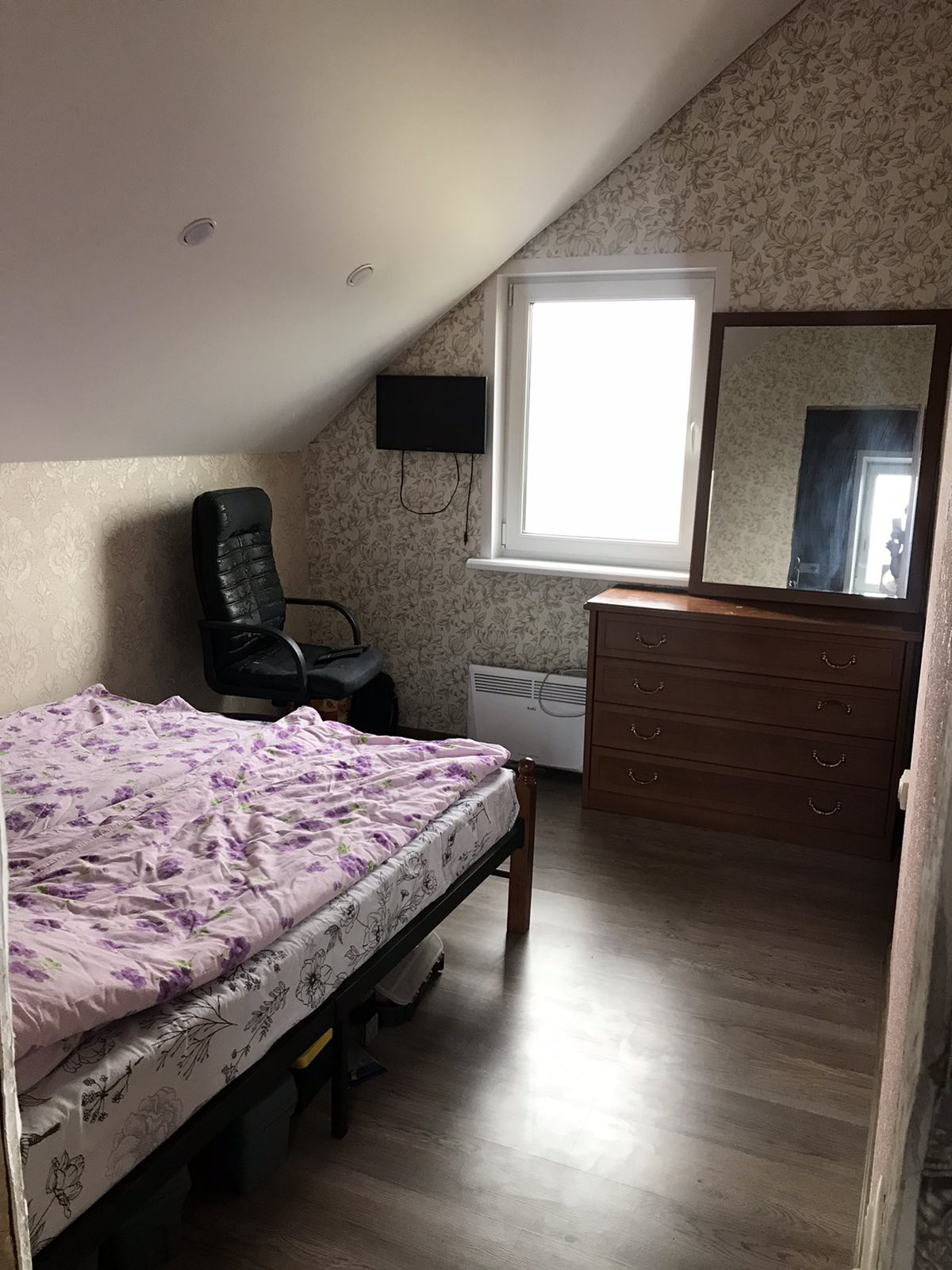 На втором этаже две спальни и небольшая кладовка/гардеробная.