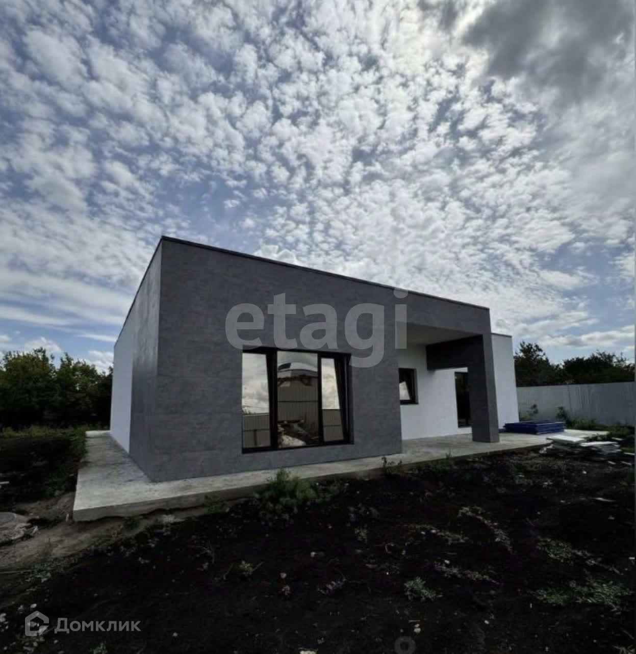 Вода, Электричество заведено в дом. Канализация проложена и выведена в выгребную яму. Газ, полученны тех.условия. Участок 6 соток. Дом из керамзитоблоков с утеплением и комбинированной улучшенной отделкой фасада. Перекрытие железобетонные плиты. Кровля плоская утепленная.