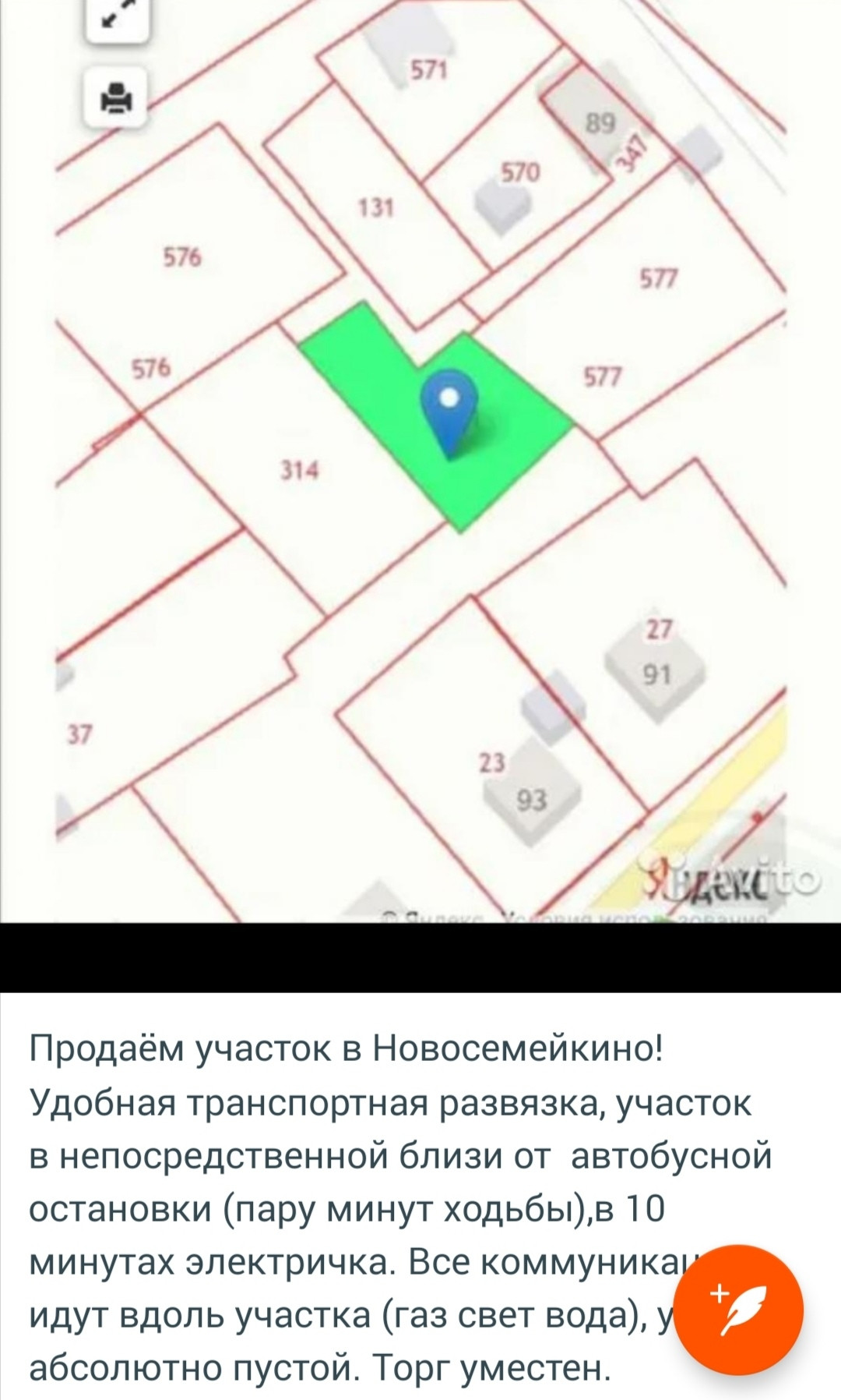 Земельный участок без строений, в непосредственной близи находится автобусная остановка.