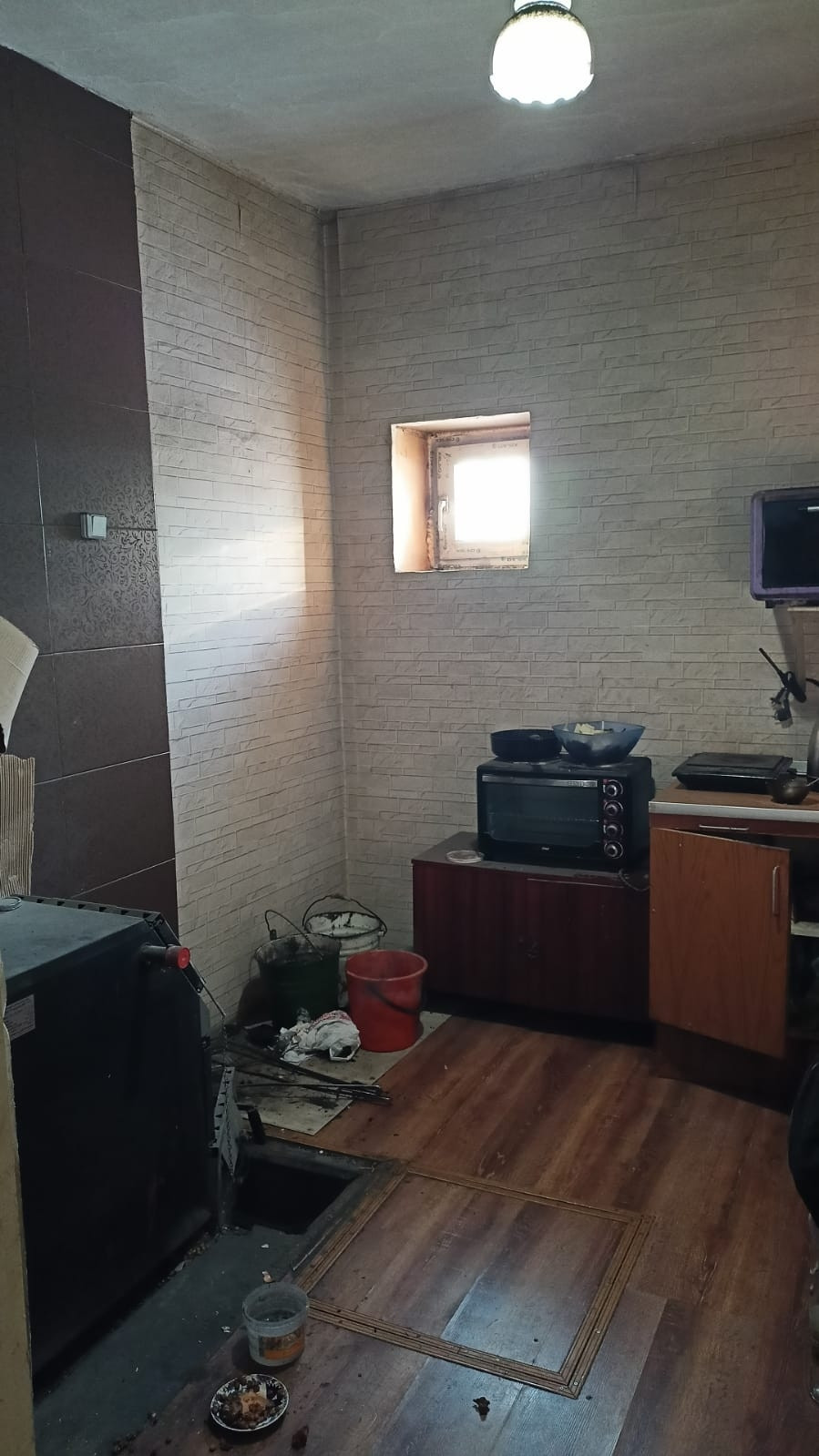 Дом отапливается котлом, в ванной комнате и кухне установлены бойлеры для подогрева воды.