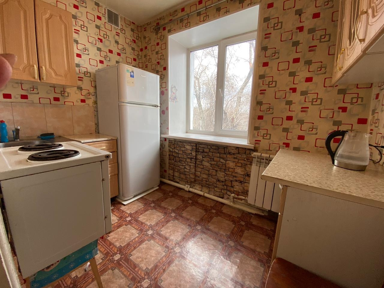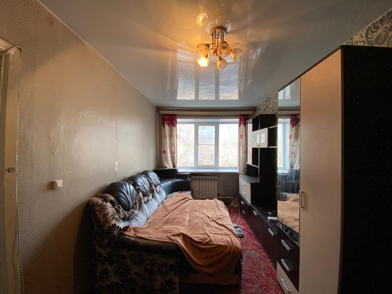 -Ремонт обычный. Натяжные потолки, окна ПВХ, отопление биметалл. На полу постелен ленолиум.