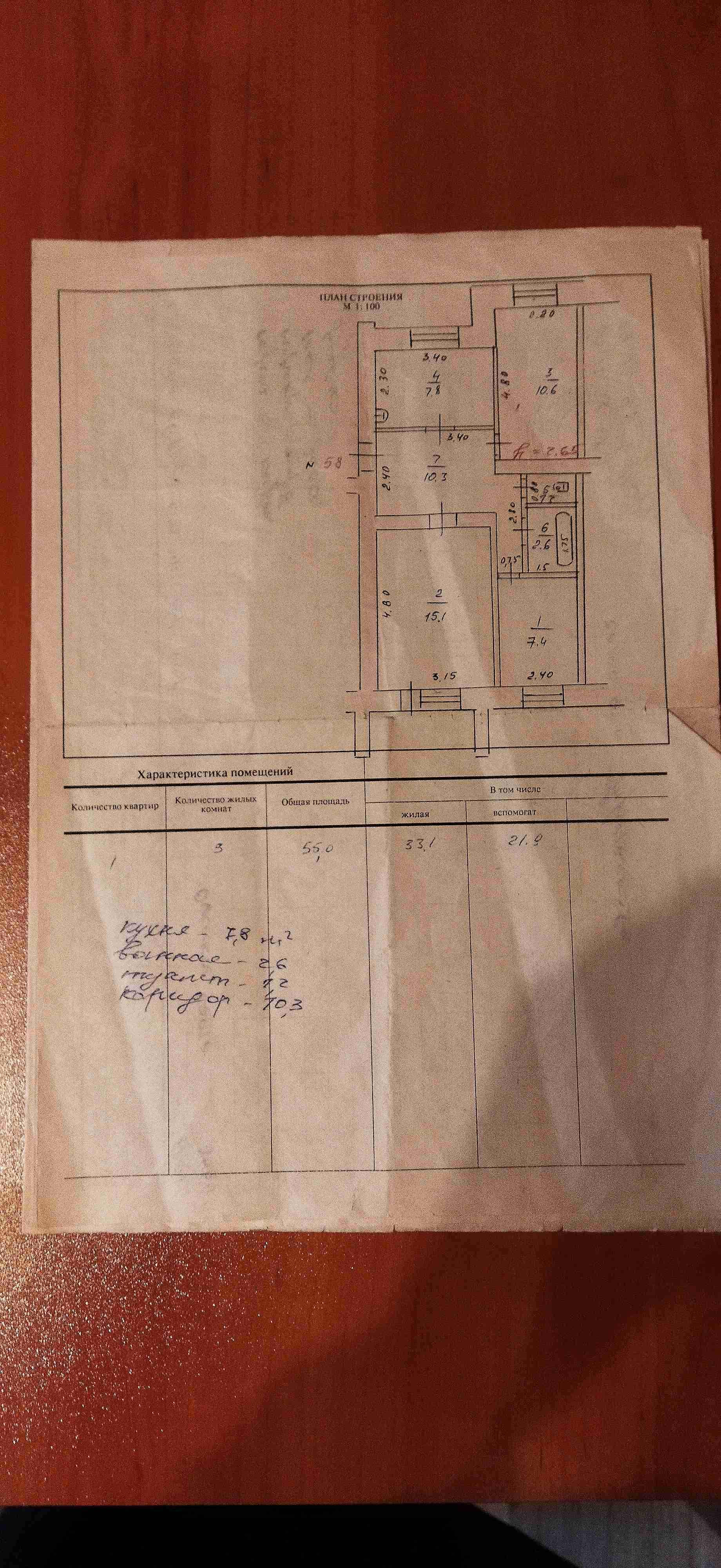 Общая площадь 55м².