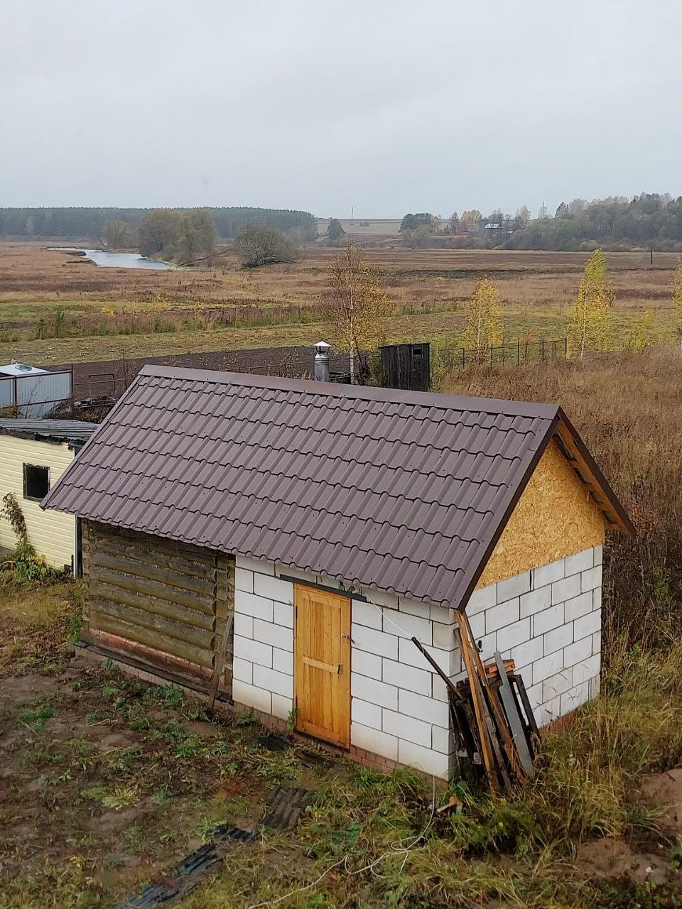 Баня новая - сруб 4×4, пристрой из блоков.