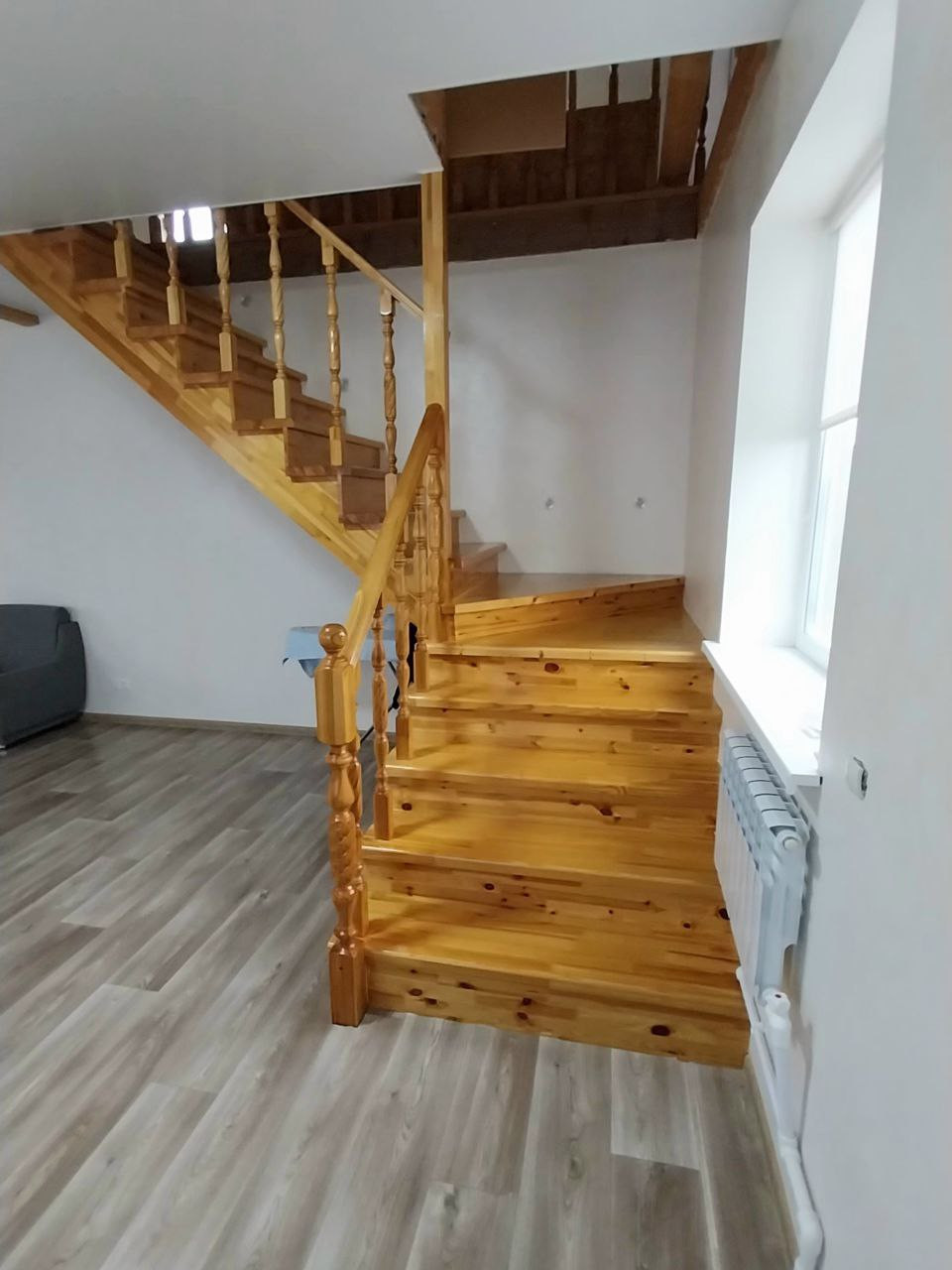 Второй этаж утеплен, обшит гипсокартонном, зашпаклеван и готов под отделку. Окна - пластиковые стеклопакеты во всех помещениях. Сделана отличная лестница на 2 этаж (сосна)