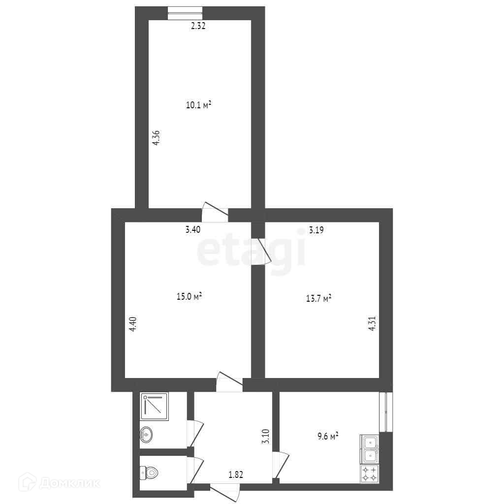 Общая площадь 58.2 м2