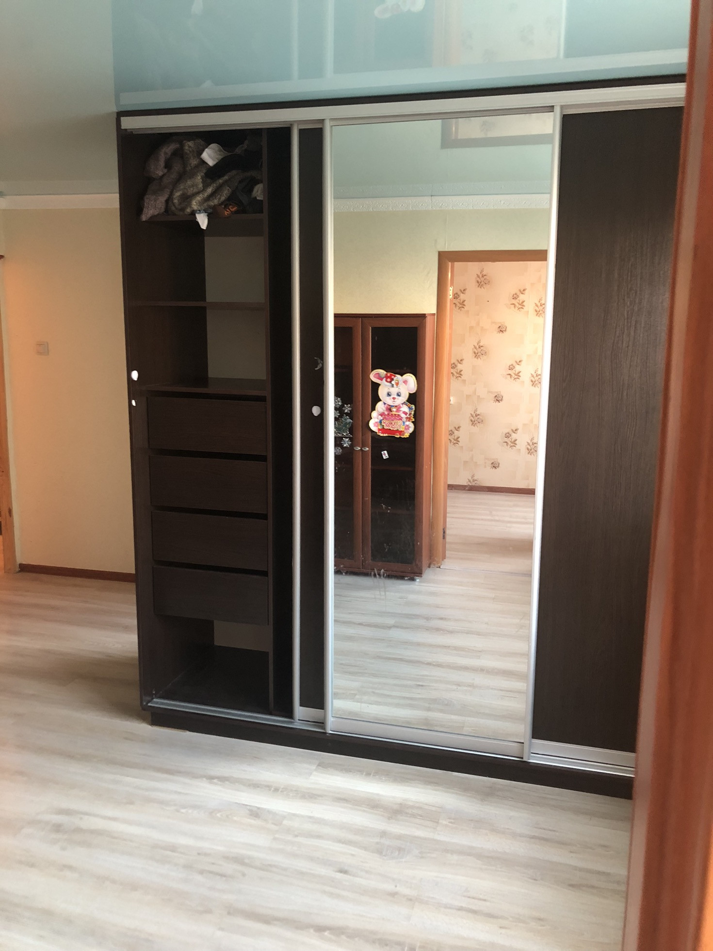 Двух комнатная квартира с косметическим ремонтом, натяжные потолки, пол ламинат. В квартире имеется все необходимое для проживания. При продаже остаётся стиральная машинка, встроенная кухня со всей техникой, микроволновая печь, два телевизора (зал и кухня), в зале диван и большой вместительный шкаф-купе на всю стену, в спальне большая кровать, при желании матрац можно сменить.