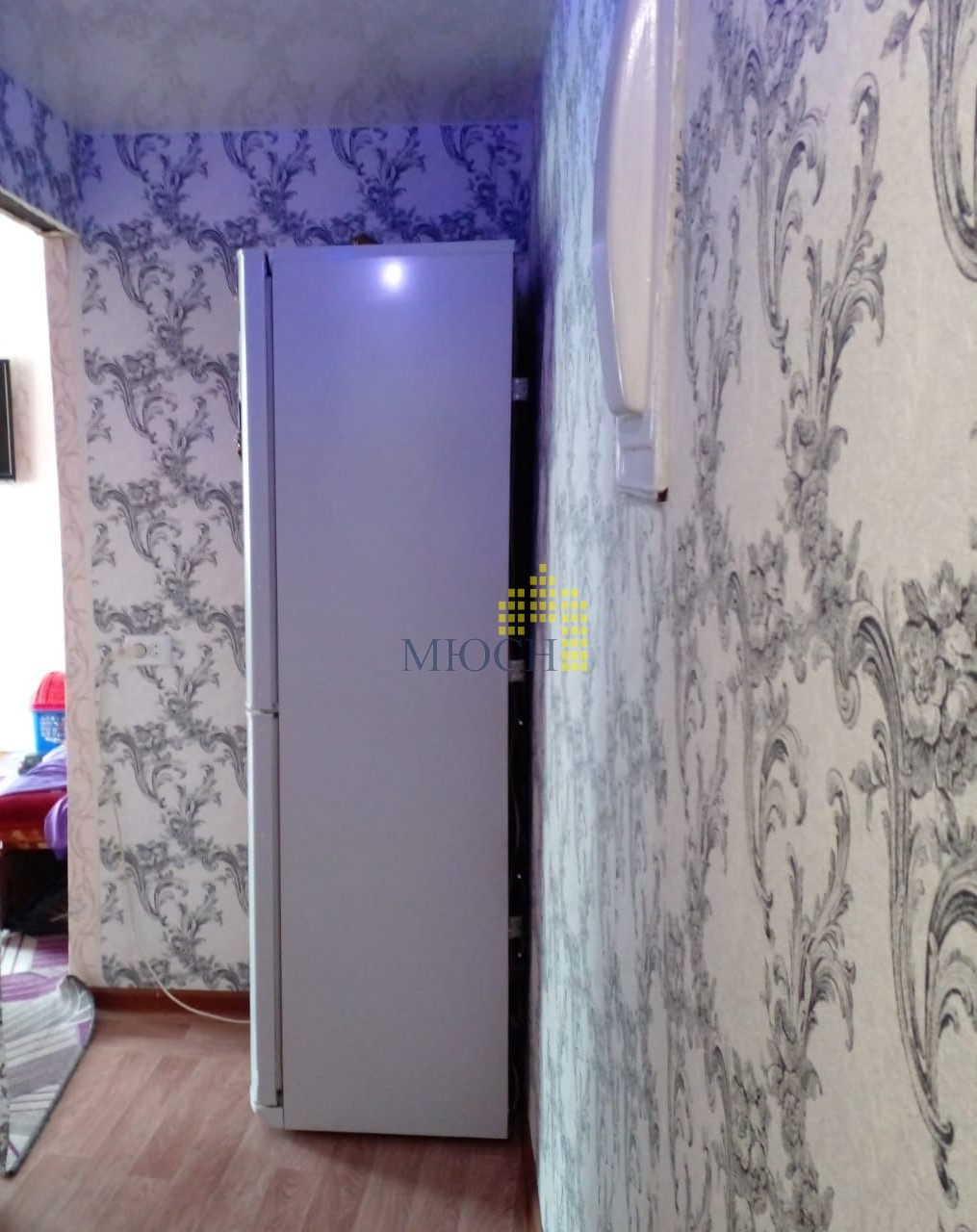 Квартира не торцевая, тёплая, светлая, с косметическим ремонтом: установлены стеклопакеты, радиаторы чугунные, счетчики воды не установлены, электрику не меняли. На полах - ковролин, кухня и коридор - линолеум. На стенах обои. Потолки натяжные, в маленькой комнате - двухуровневый. Санузел совмещенный: пол и стены – кафель.