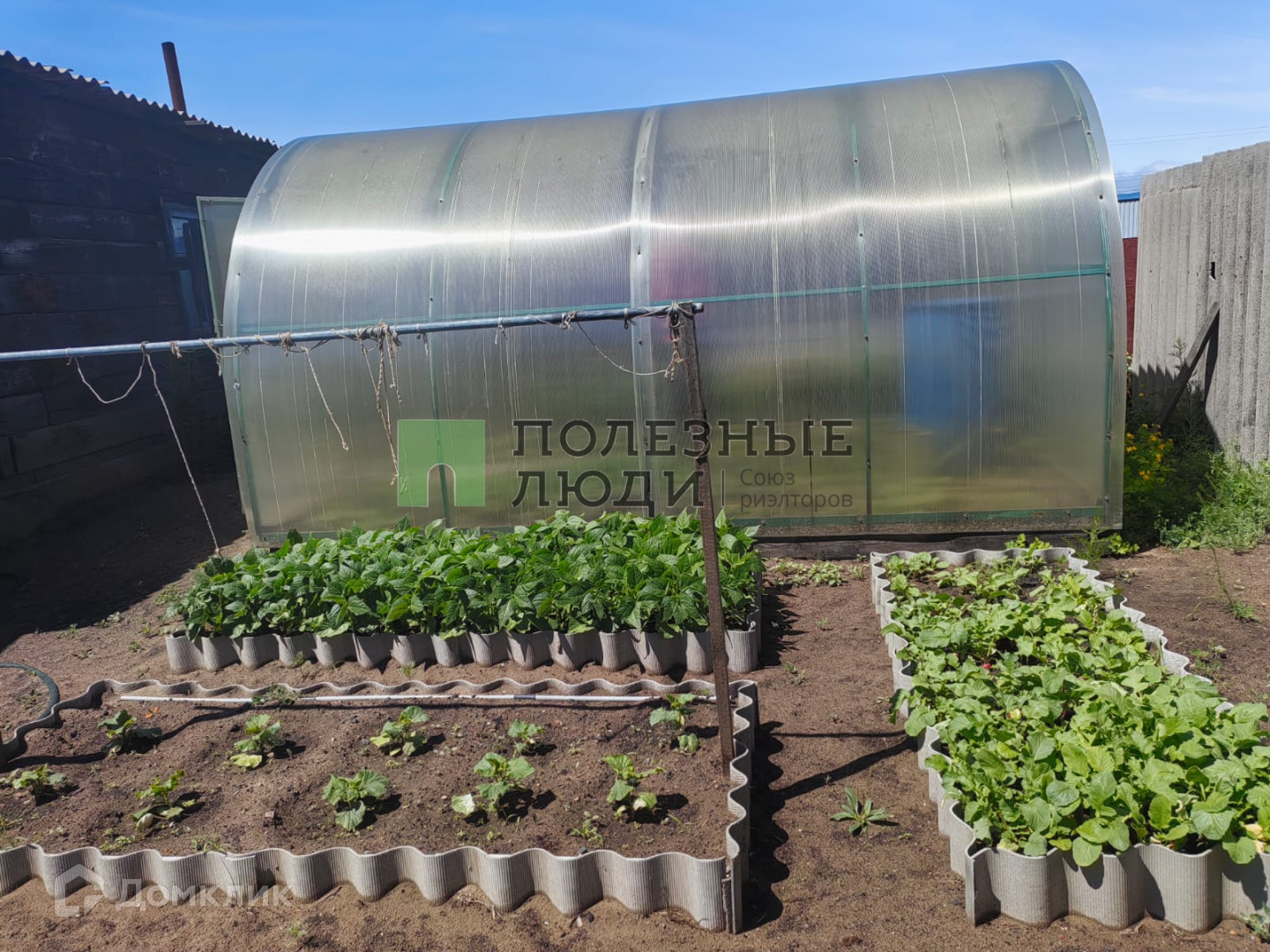 Из построек: Гараж, баня, зимовье, летний душ, теплица.