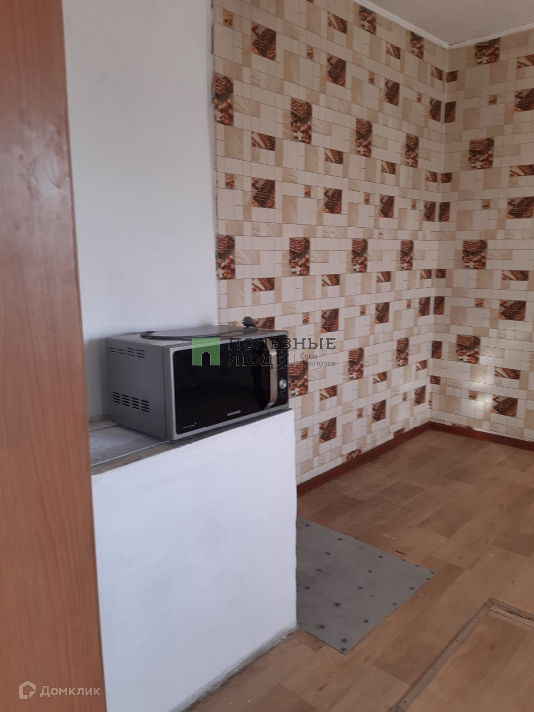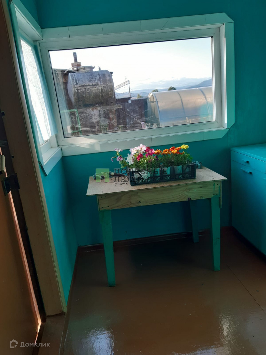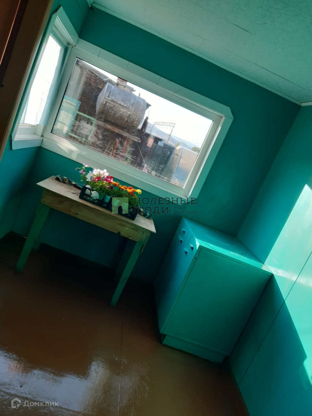 На полу поверх досок уложена фанера и линолеум.