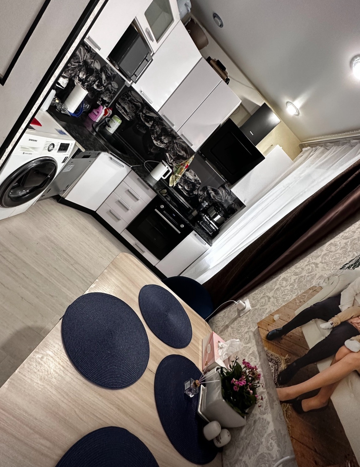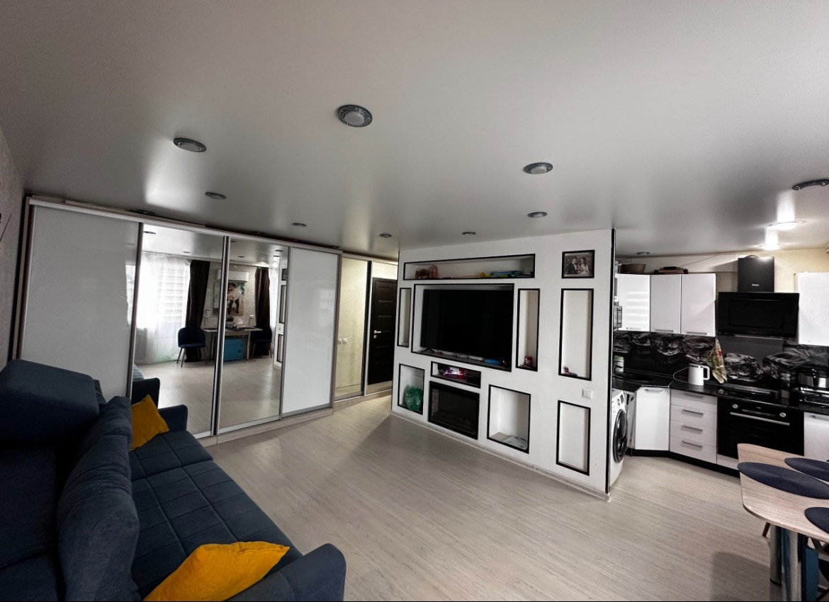 Остается большой шкаф купе делался на заказ по замерам, камин , кондиционер, кухонный гарнитур, плита  , бойлер 100л , по необходимости остальная мебель по договоренности