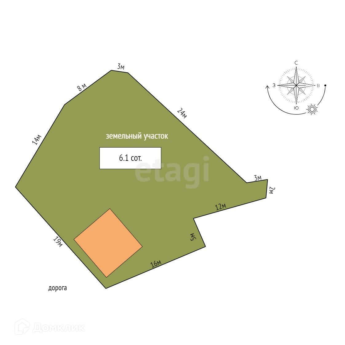 Площадь участка 6.1 сот.
