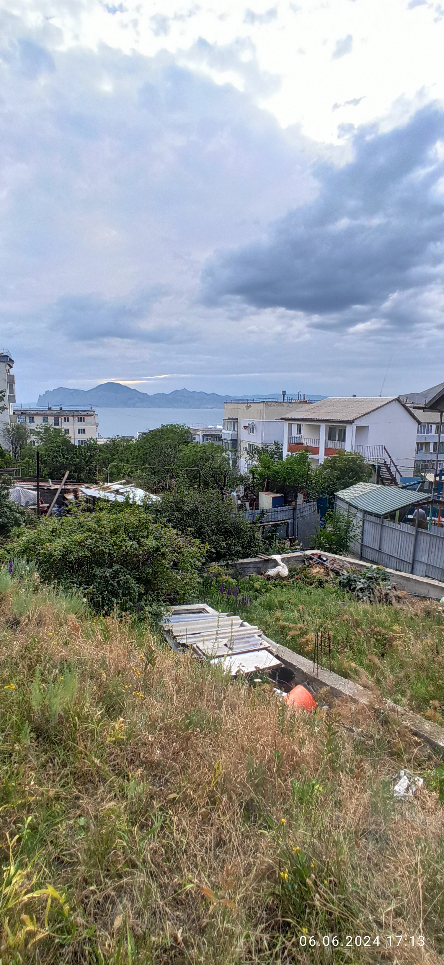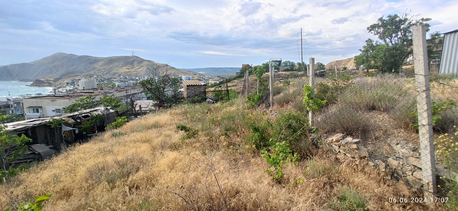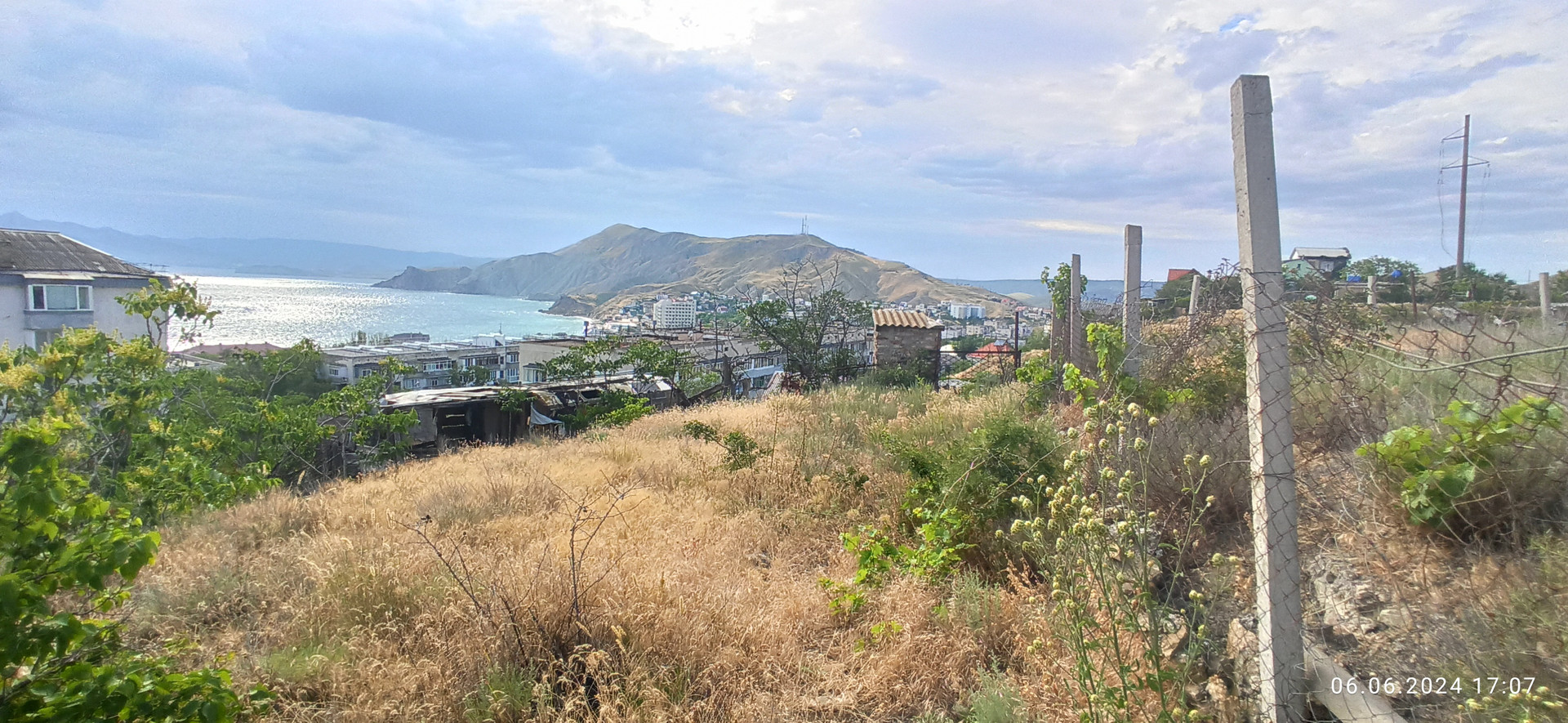 Видовой участок 6,5 сот на возвышенности. Коммуникации рядом: вода рядом, свет скоро подключат. С участка открывается панорамный вид на поселок и на море. Расстояние до моря 300 м, до автобусной остановки и магазинов 100 м.