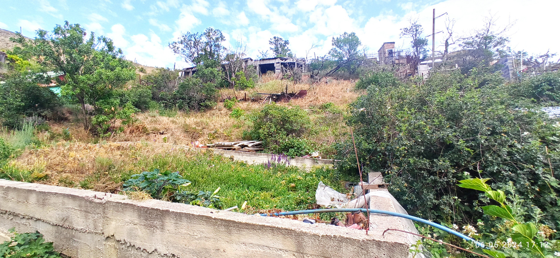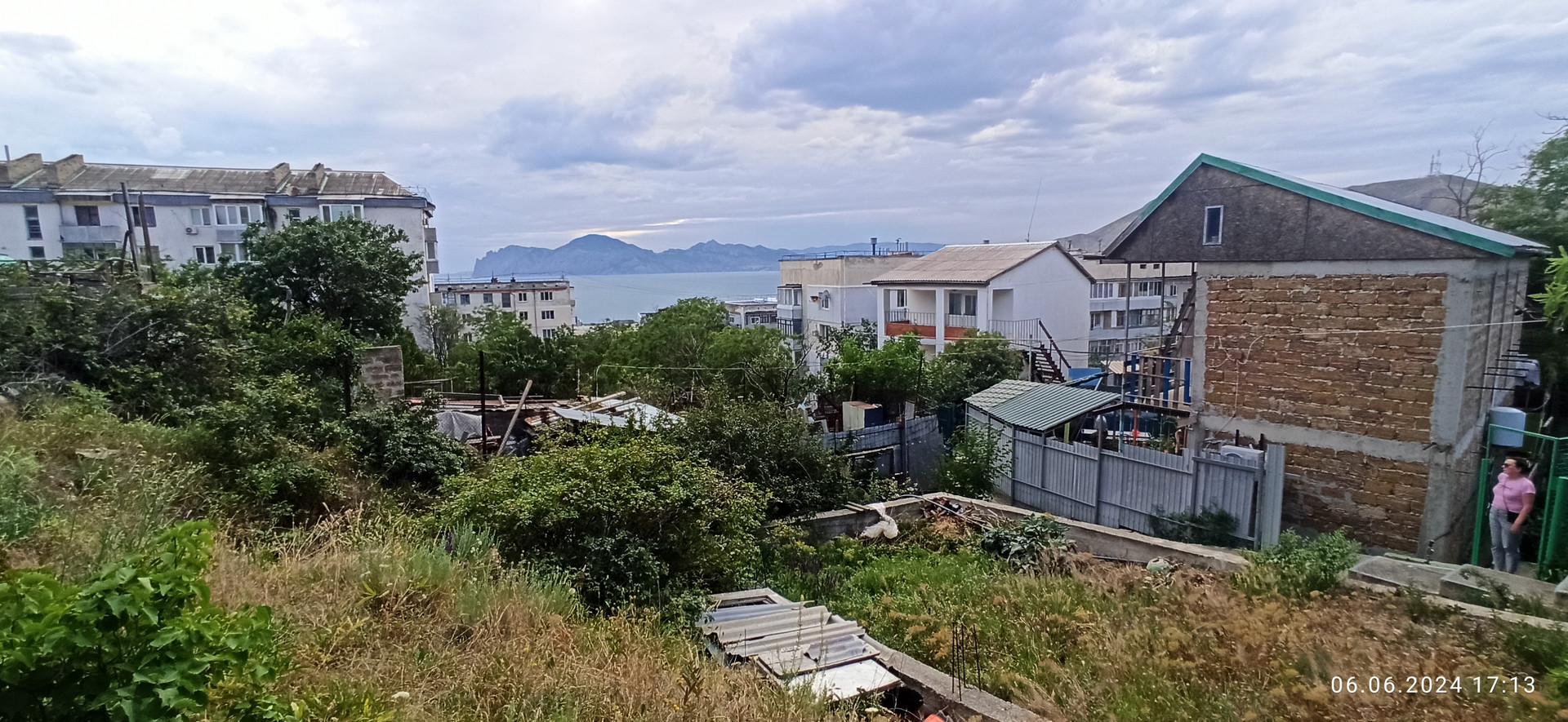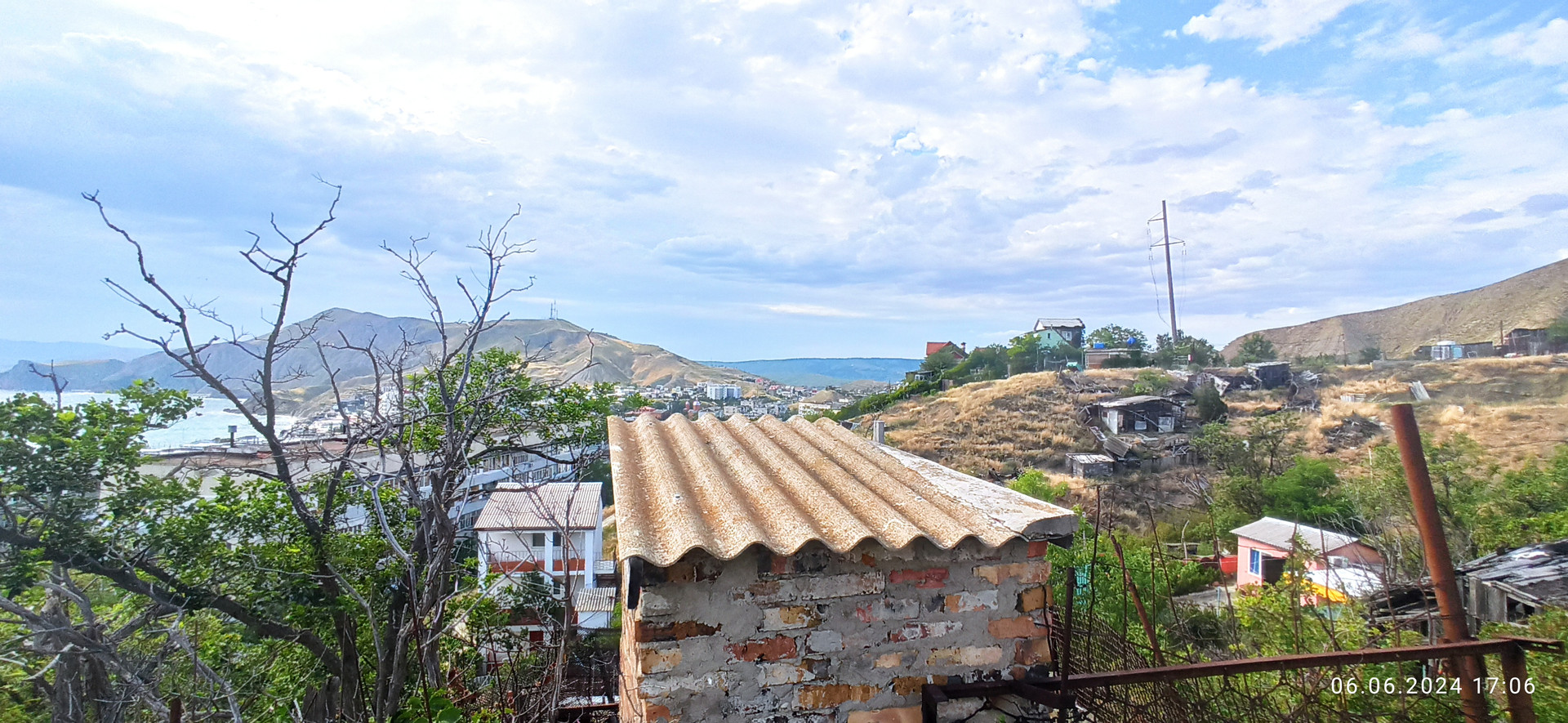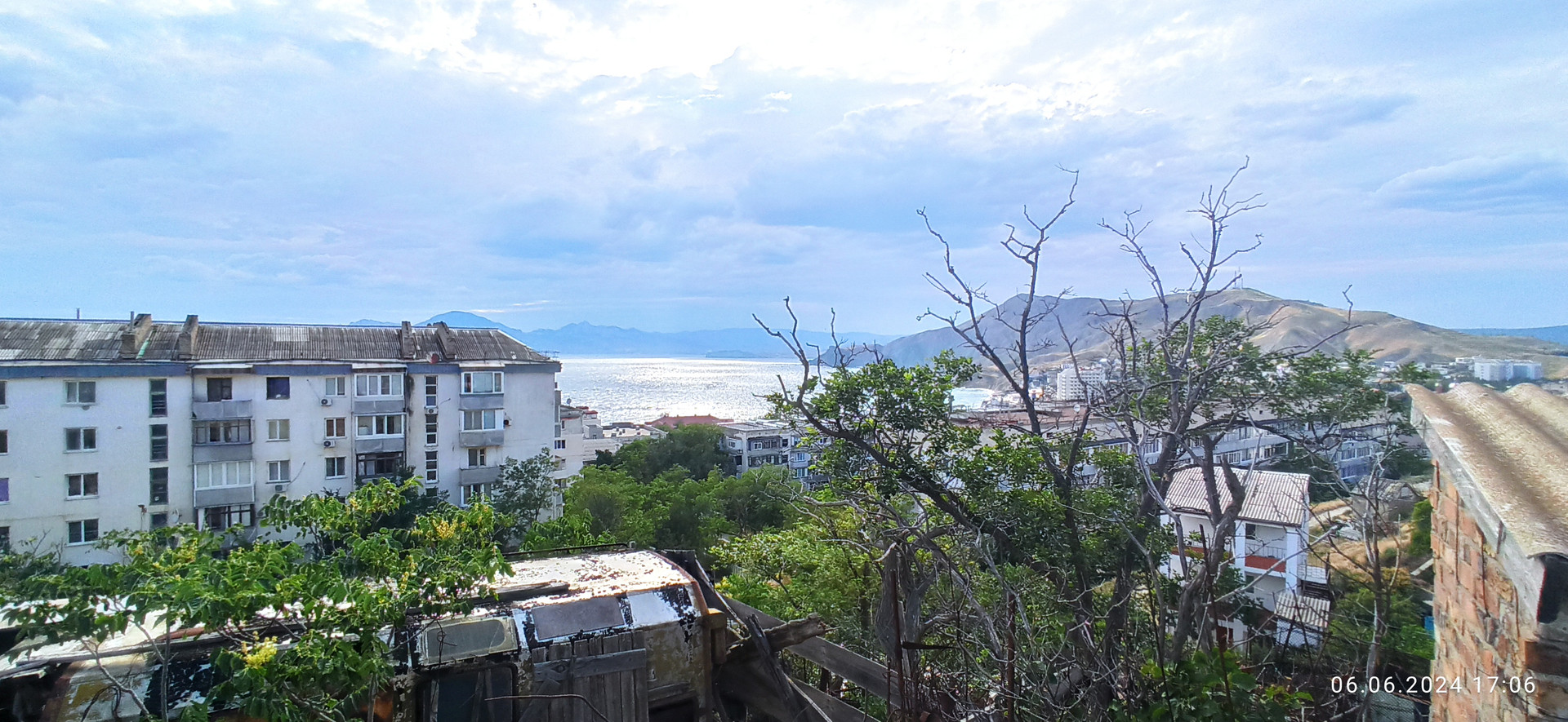 Видовой участок 6,5 сот на возвышенности. Коммуникации рядом: вода рядом, свет скоро подключат. С участка открывается панорамный вид на поселок и на море. Расстояние до моря 300 м, до автобусной остановки и магазинов 100 м.